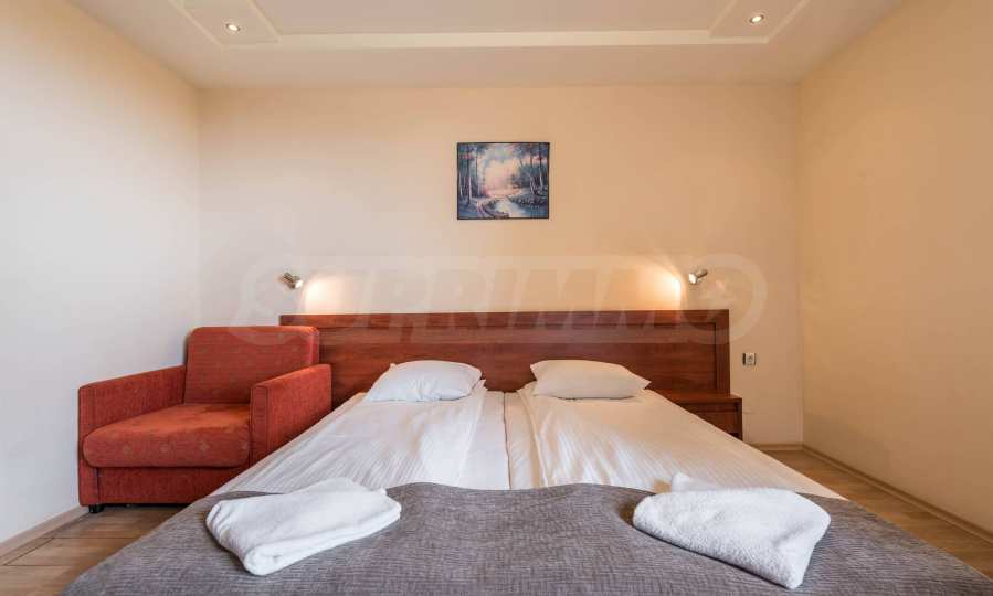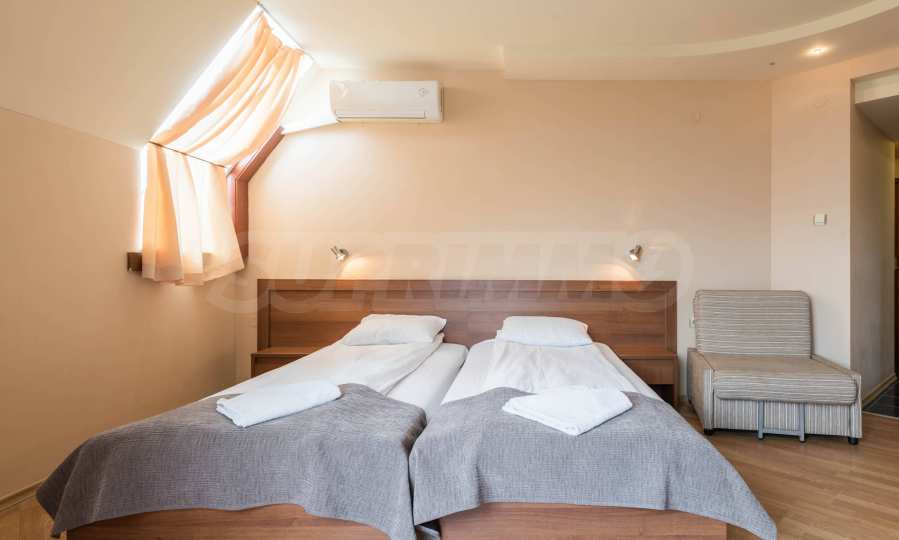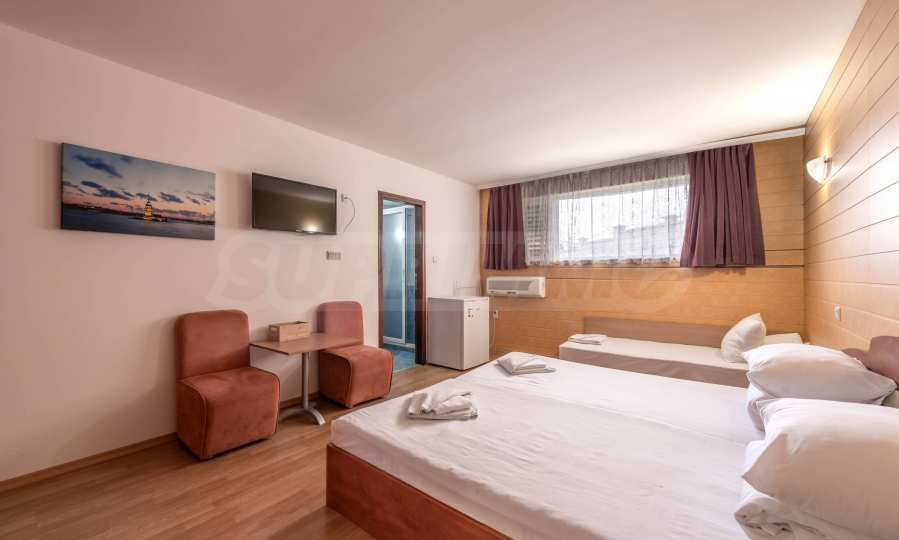 Das Hotel ist komplett möbliert und ausgestattet und das ganze Jahr über in Betrieb. Jedes Zimmer ist mit einem TV, einem Kühlschrank und einem Schreibtisch ausgestattet und die Badezimmer verfügen über eine Dusche und einen Haartrockner.