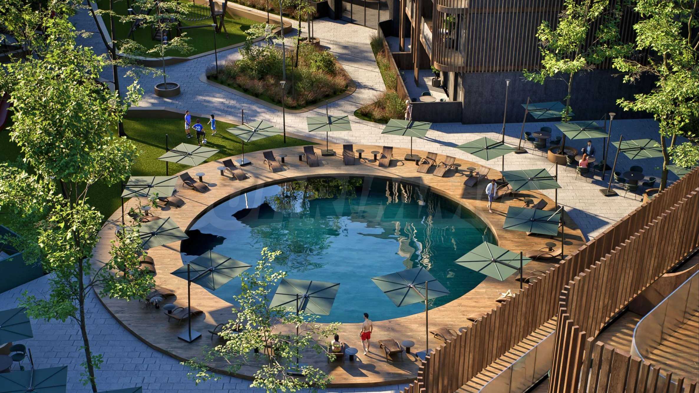 Auf dem Territorium der Wohnanlage wird ein komfortabler Raum für ein helles Leben und Erholung der Bewohner und ihrer Gäste geschaffen: