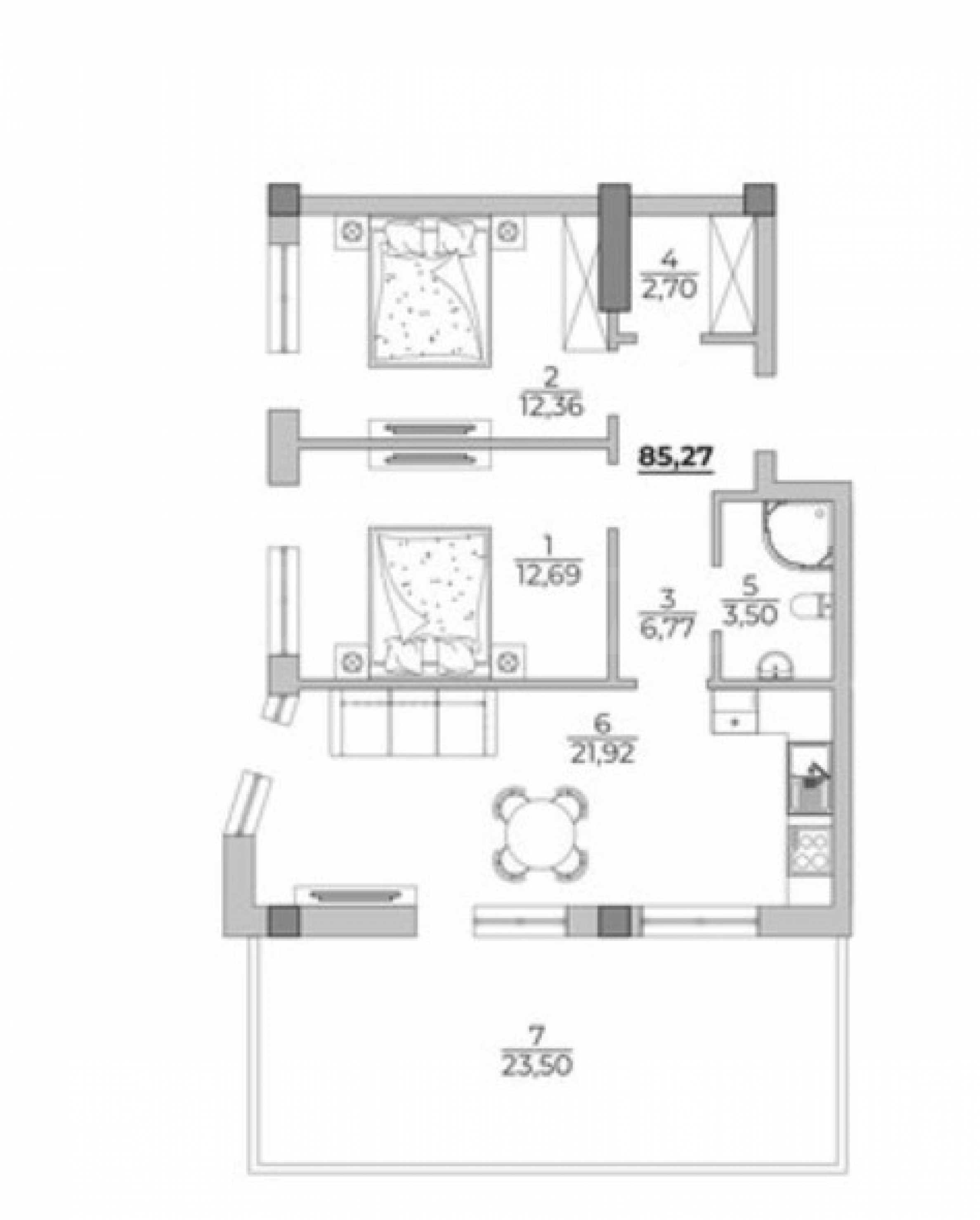 Das Anwesen mit einer Gesamtfläche von 85,27 qm liegt im Erdgeschoss und verfügt über eine eigene überdachte Terrasse und Zugang zum Hof.