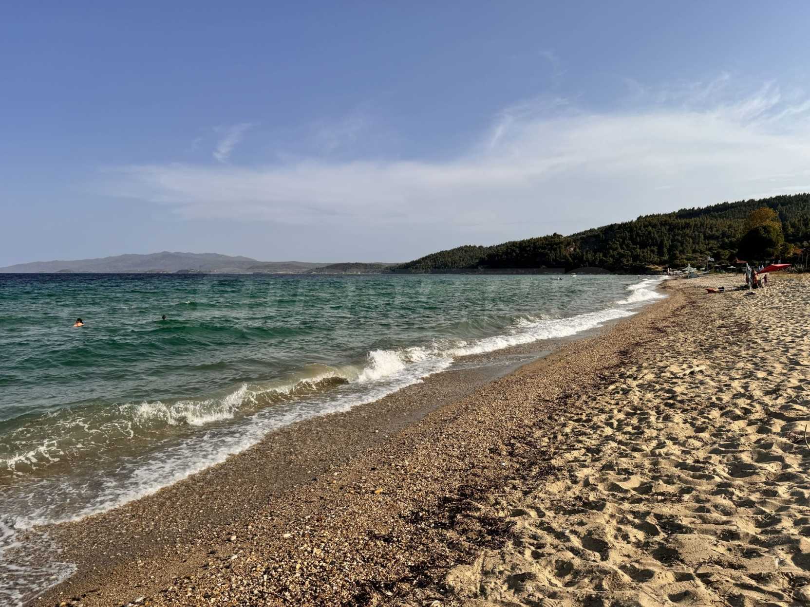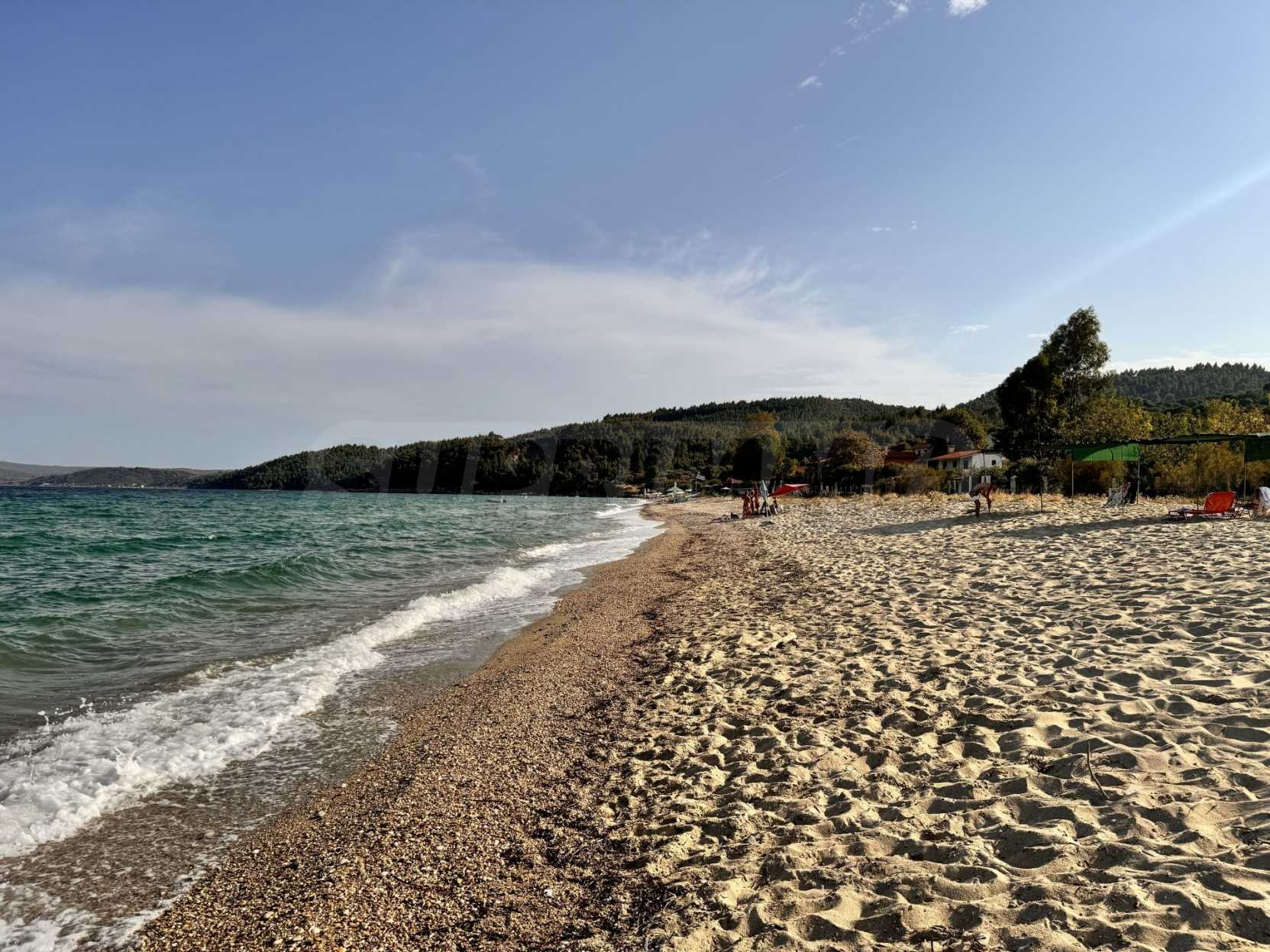 Fantastisches Eckgrundstück in erstklassiger Lage, nur 50 Meter vom Sandstrand in Chalkidiki, Griechenland entfernt. Bebaubar unter besonderen Bedingungen. 1550 m² mit Strom und Wasser verfügbar. Gelegen in Sithonia mit Straßenanbindung. Ideal für Geschäftstätigkeit durch Entwicklung von Apartmentblöcken oder kleinen Villen, entweder für die Entwicklung von Immobilien zum Verkauf. Auch sehr gut geeignet, um Ihr eigenes Haus am Meer zu bauen!