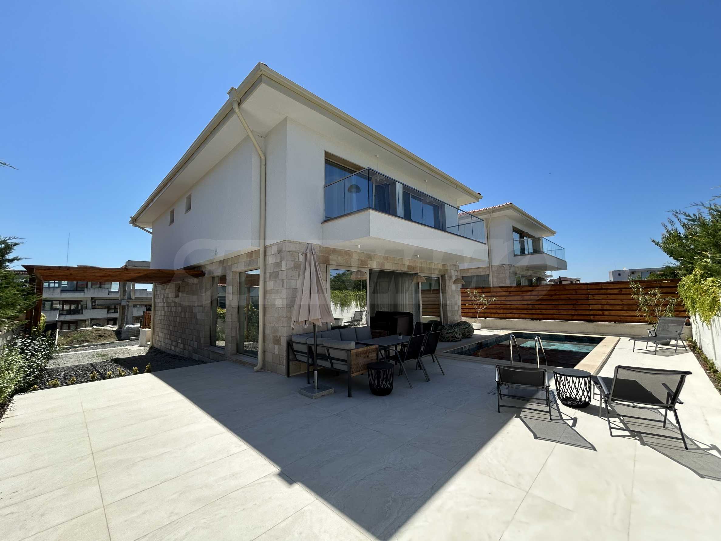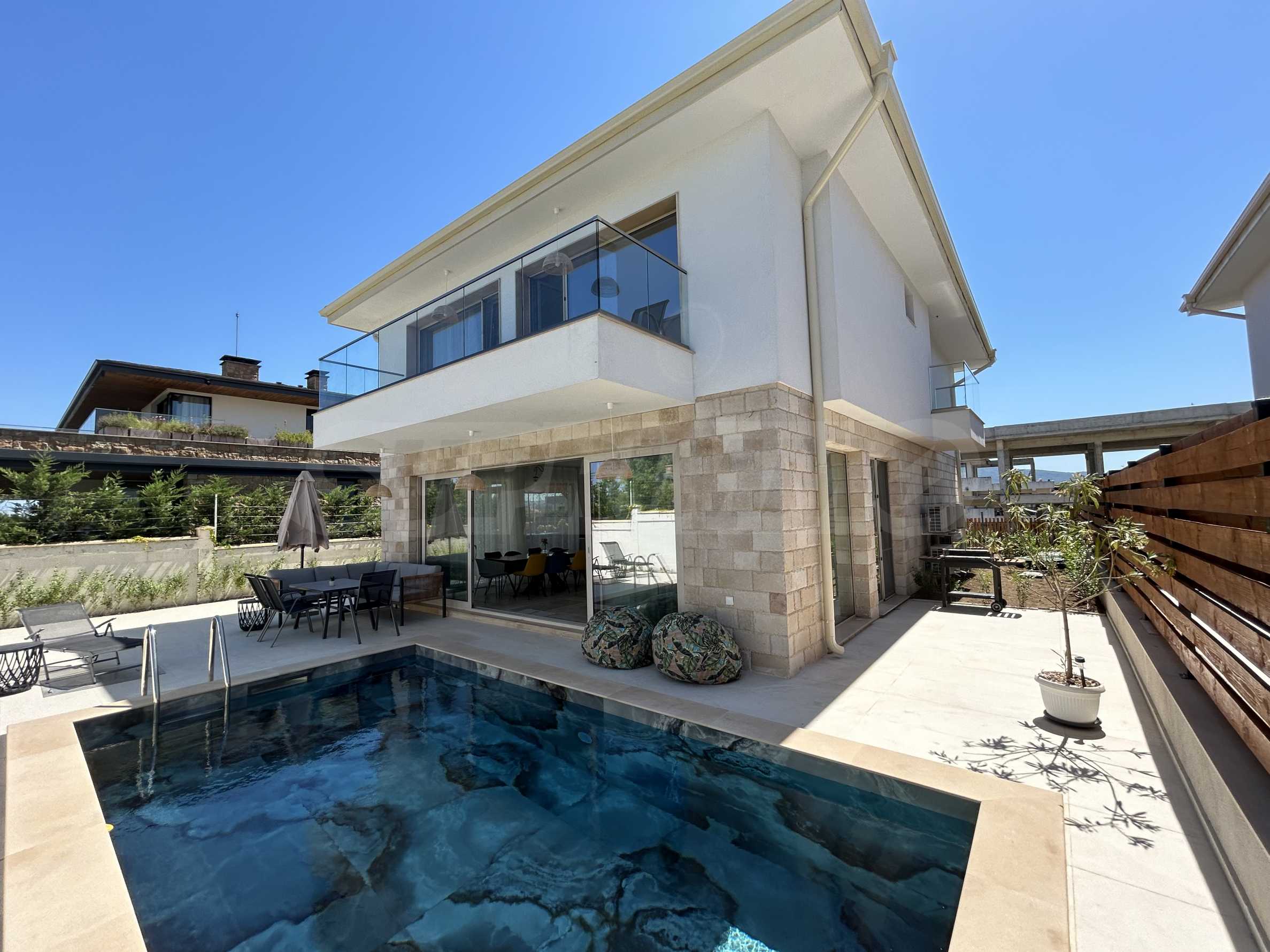 Wir präsentieren ein neues, freistehendes Haus mit Pool und Meerblick, in ruhiger Lage ca. 500 m vom Strand entfernt, im Villenviertel des Dorfes Lozenets.