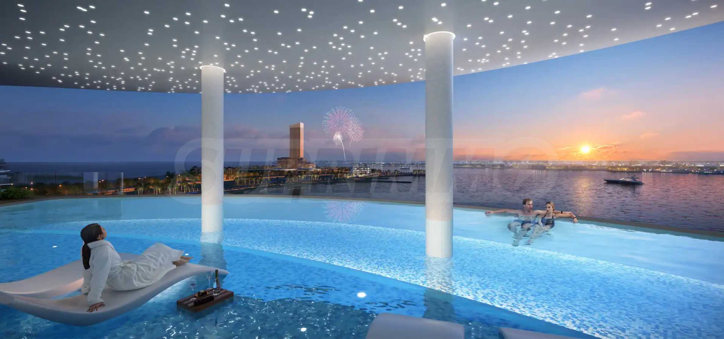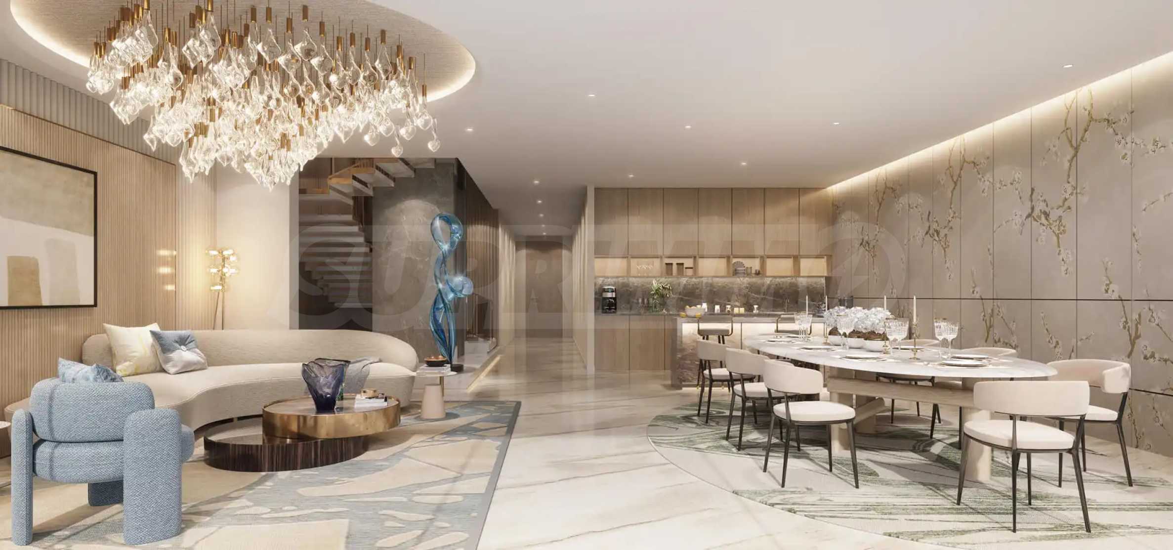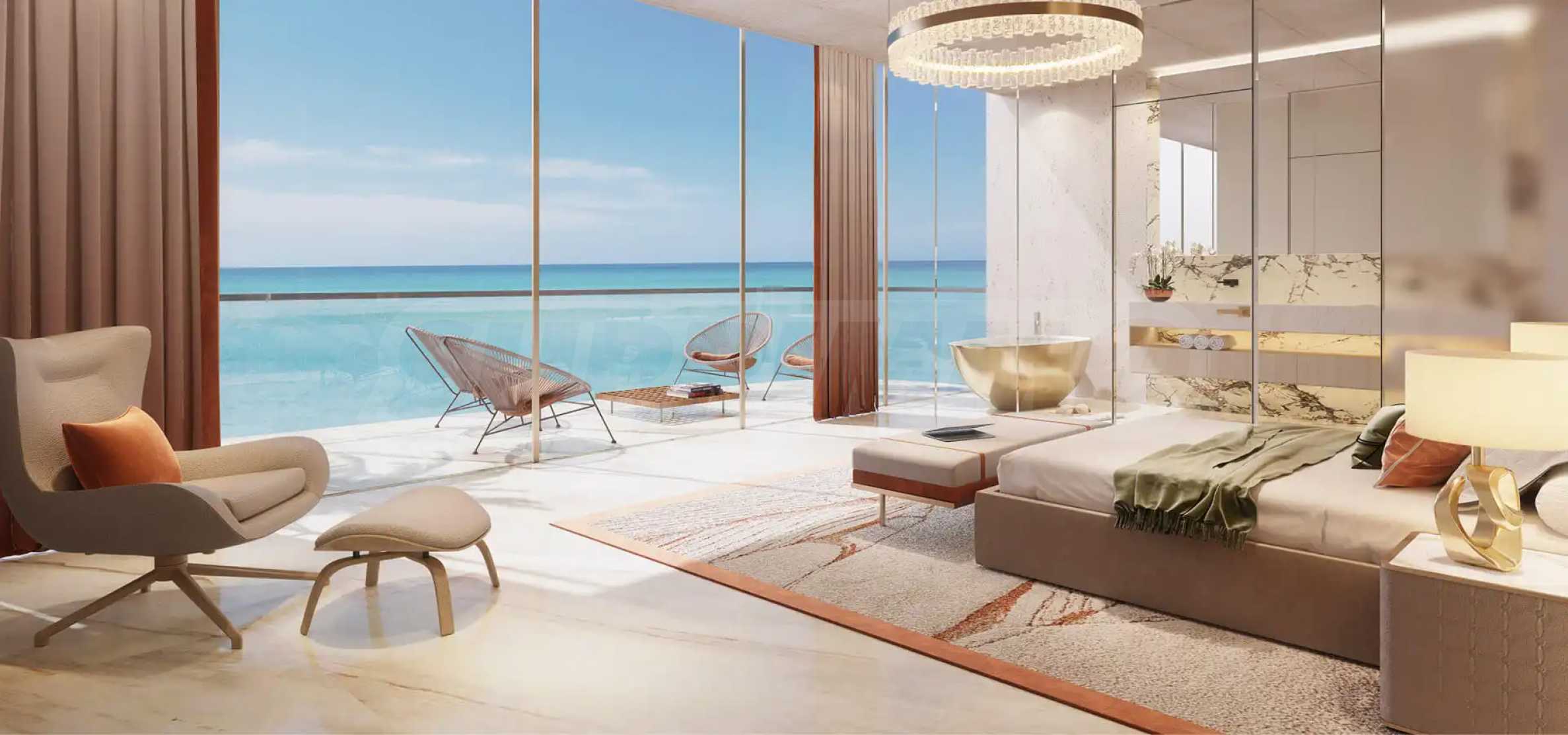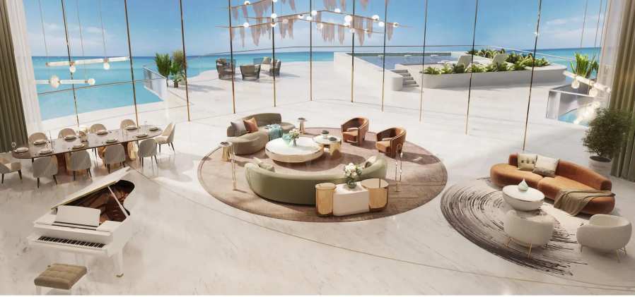 Die Residenzen bestechen durch eine Mischung aus zeitgenössischer Eleganz und praktischem Luxus. Das architektonische Design umfasst ein beeindruckendes 42 Meter langes Lobby-Atrium, das den Ton für die großzügigen Innenräume vorgibt, die sich durch viel Liebe zum Detail und hochwertige Handwerkskunst auszeichnen. Die Apartments mit 3 und 4 Schlafzimmern verfügen über einen privaten Pool.