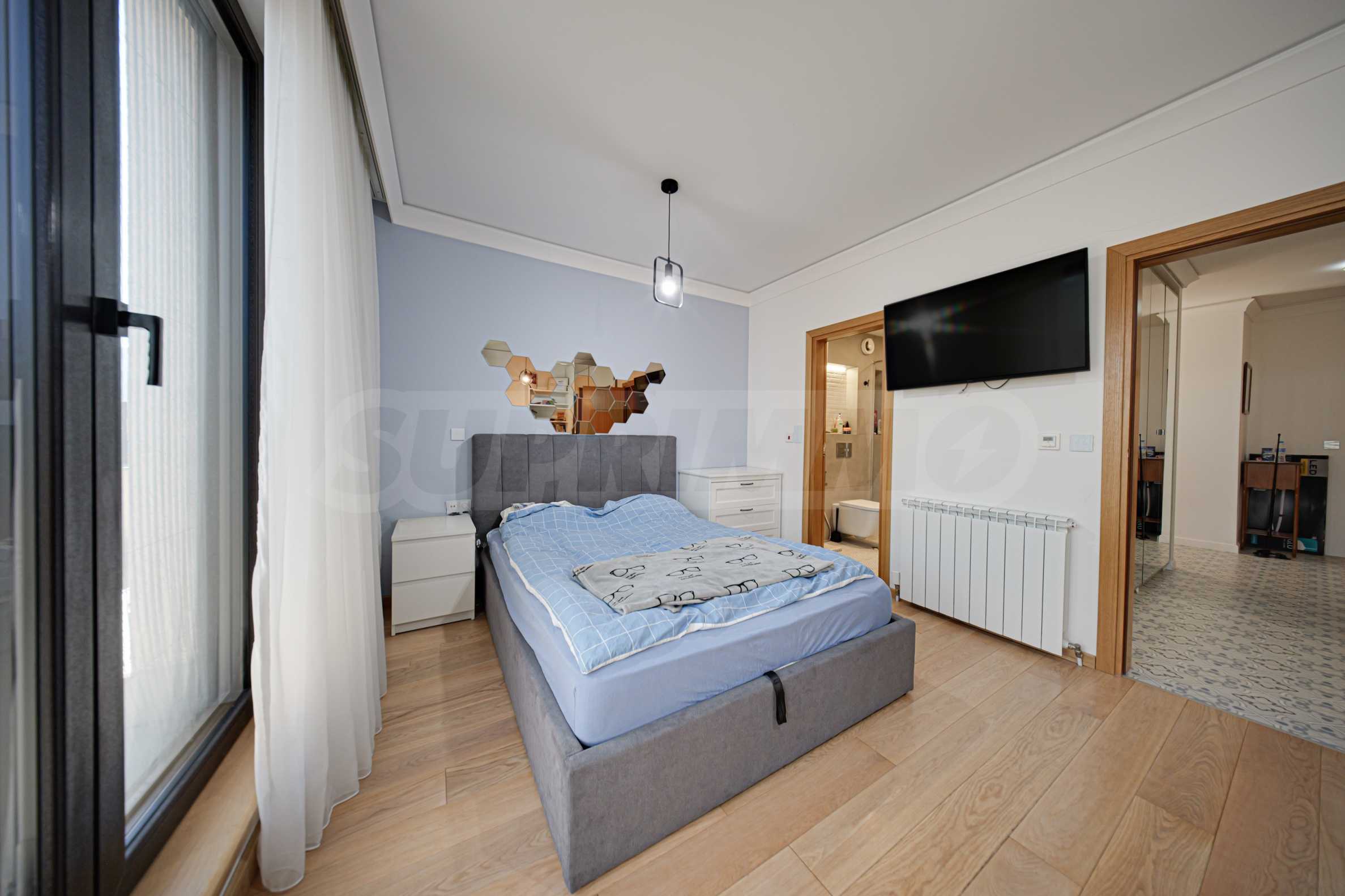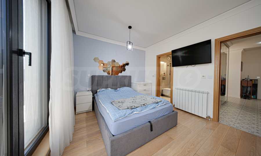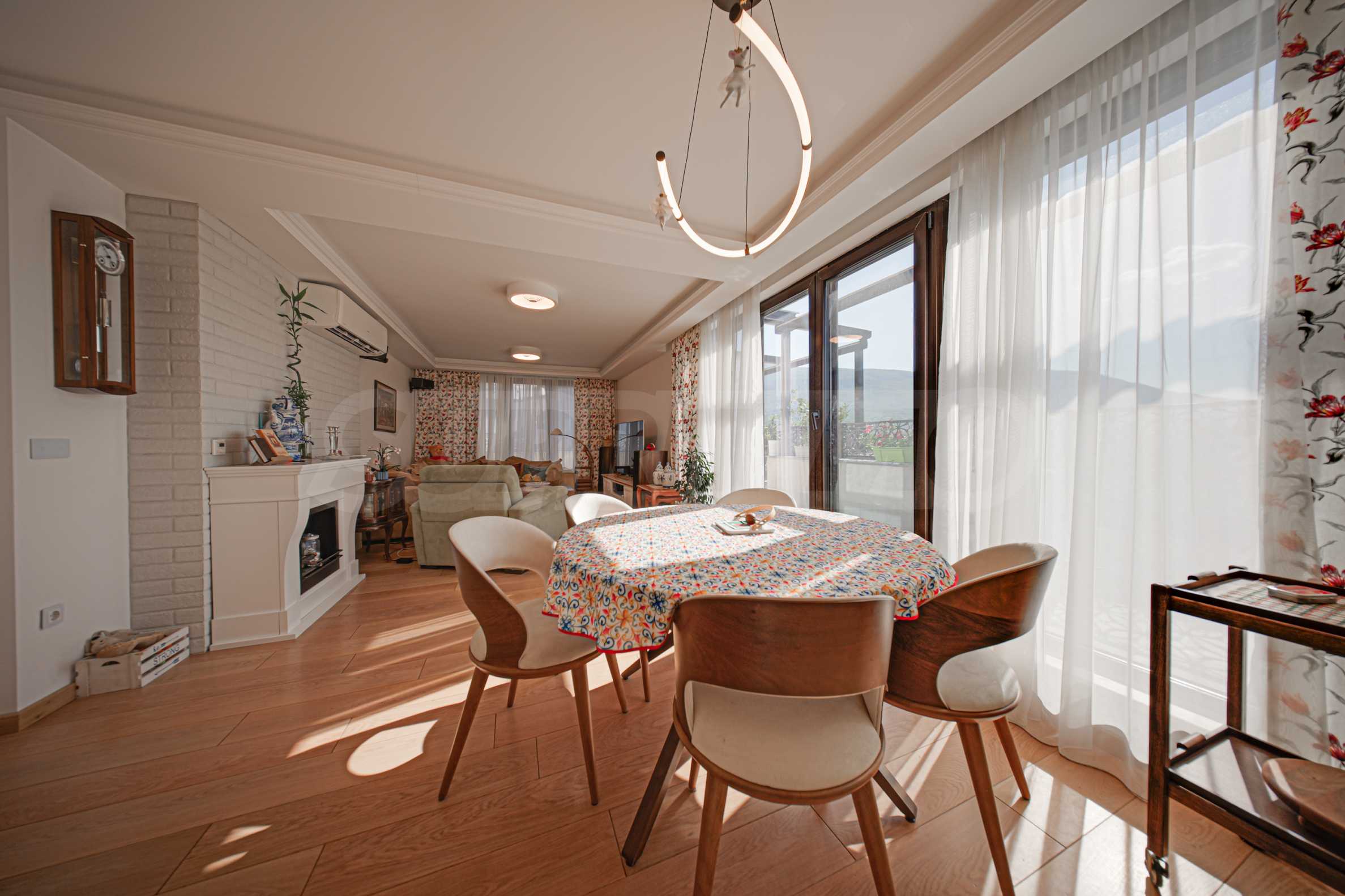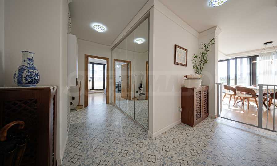 Die Wohnung befindet sich in einem Boutique-Gebäude aus dem Jahr 2021, erstreckt sich über die gesamte sechste Etage und bietet einen herrlichen Blick auf das Vitosha-Gebirge und den Park.