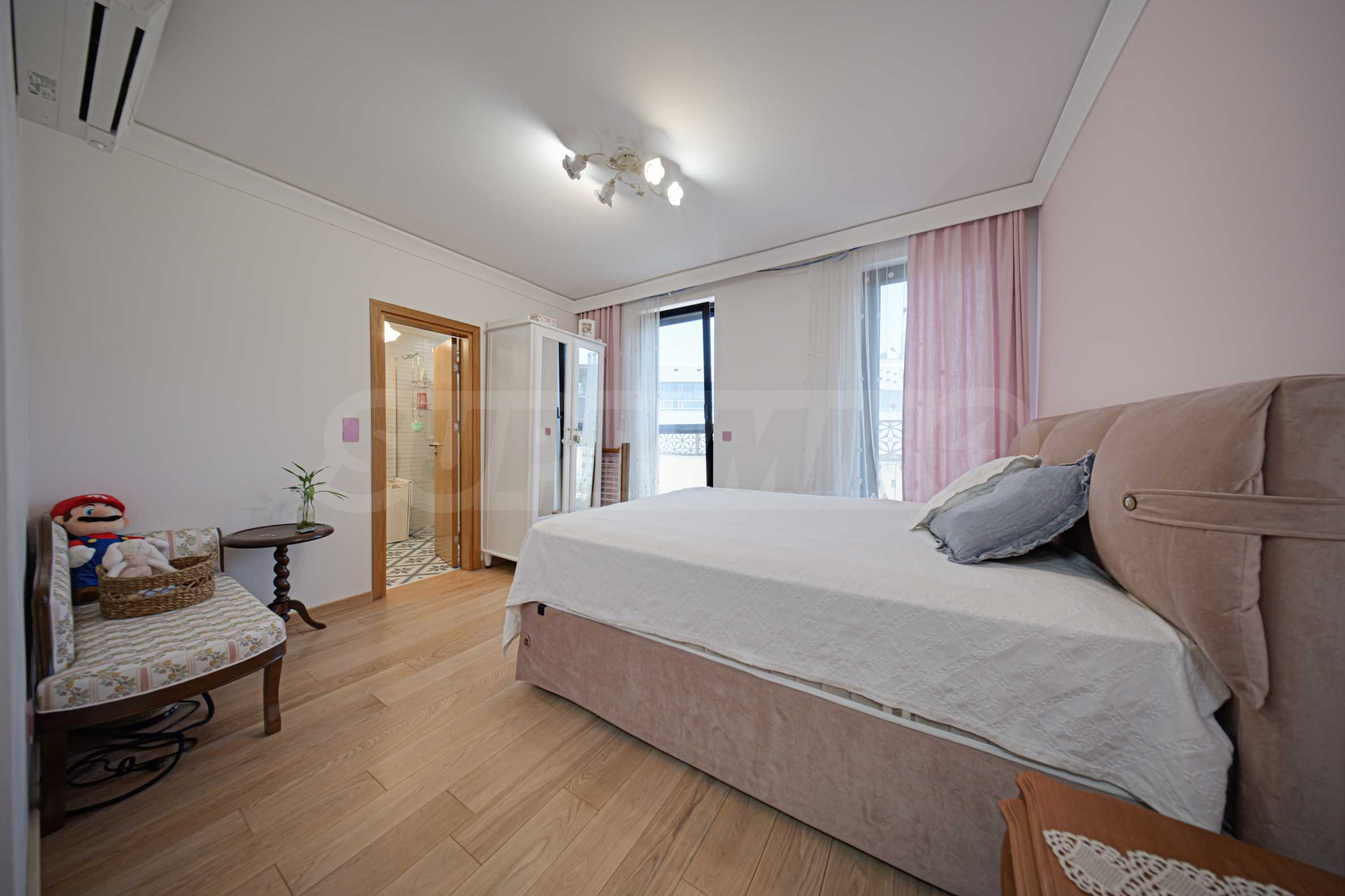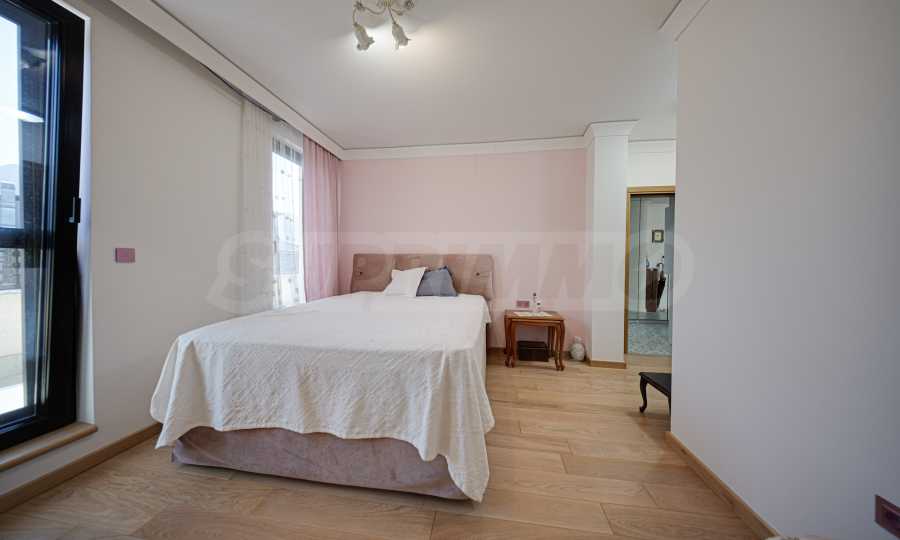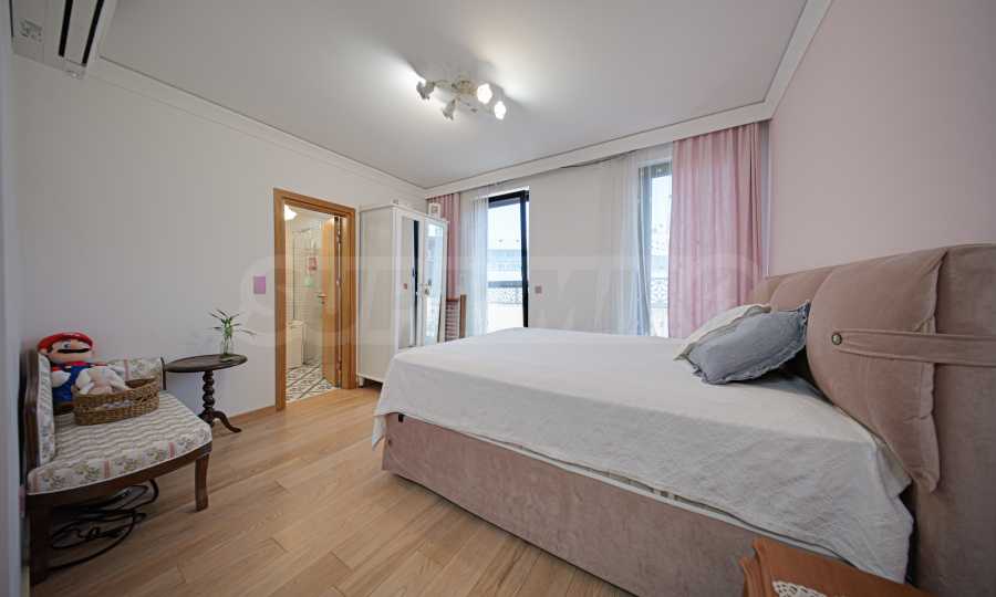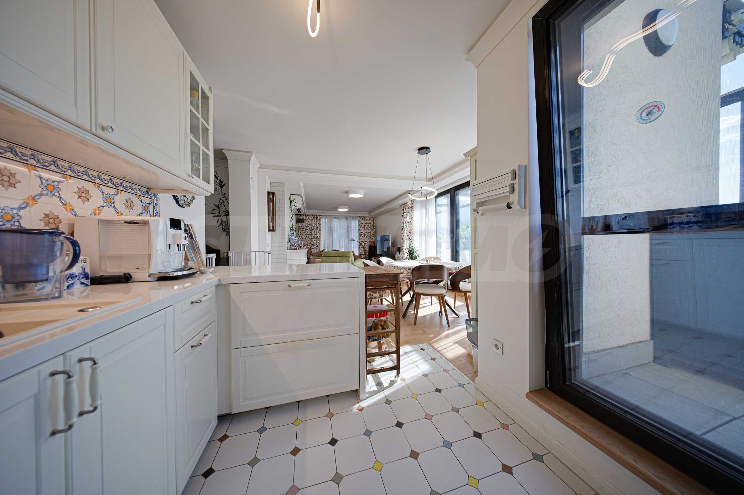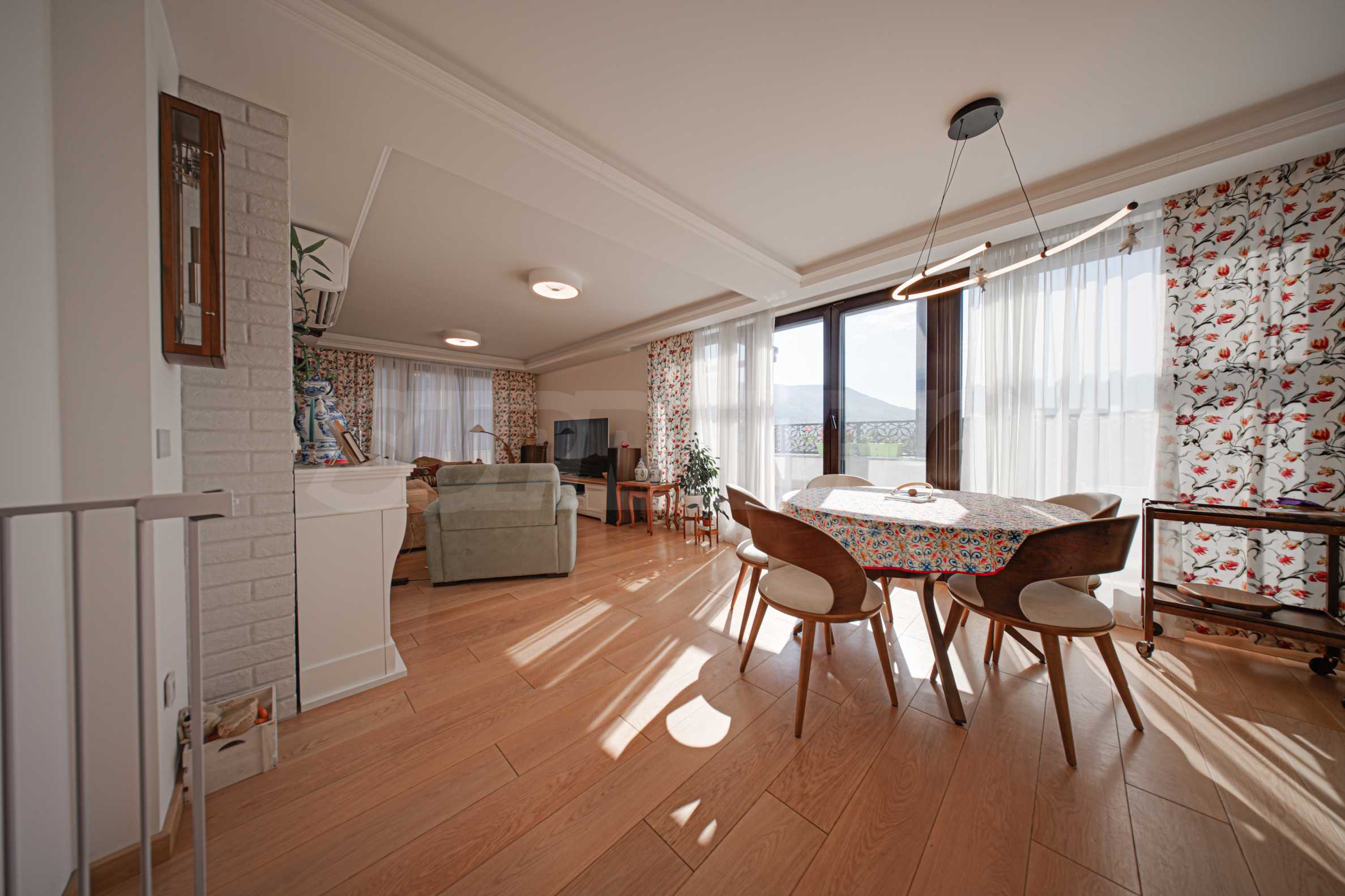 Die Wohnung befindet sich in einem Boutique-Gebäude aus dem Jahr 2021, erstreckt sich über die gesamte sechste Etage und bietet einen herrlichen Blick auf das Vitosha-Gebirge und den Park.