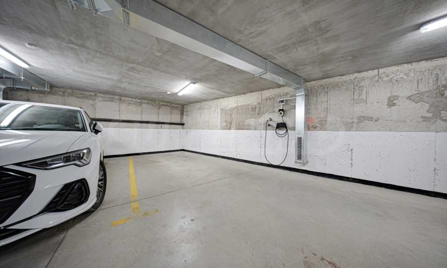 Zur Wohnung besteht die Option, einen Tiefgaragenstellplatz mit einer 2EV-Ladestation (Kapazität 7,4 kW), einen Keller von 6,80 m² und angrenzende 13,67%ige ideelle Anteile am Gebäude direkt auf dem Grundstück zum Preis von 70.000 € zu erwerben.