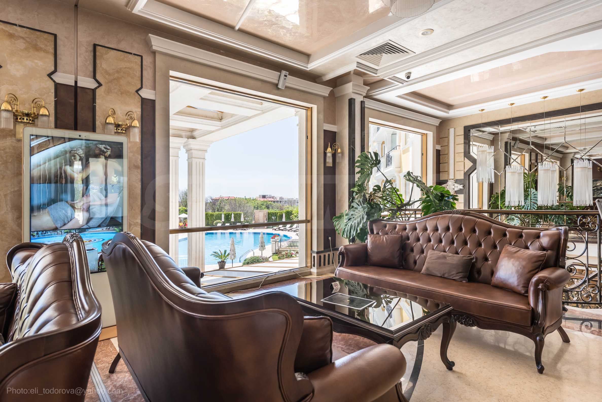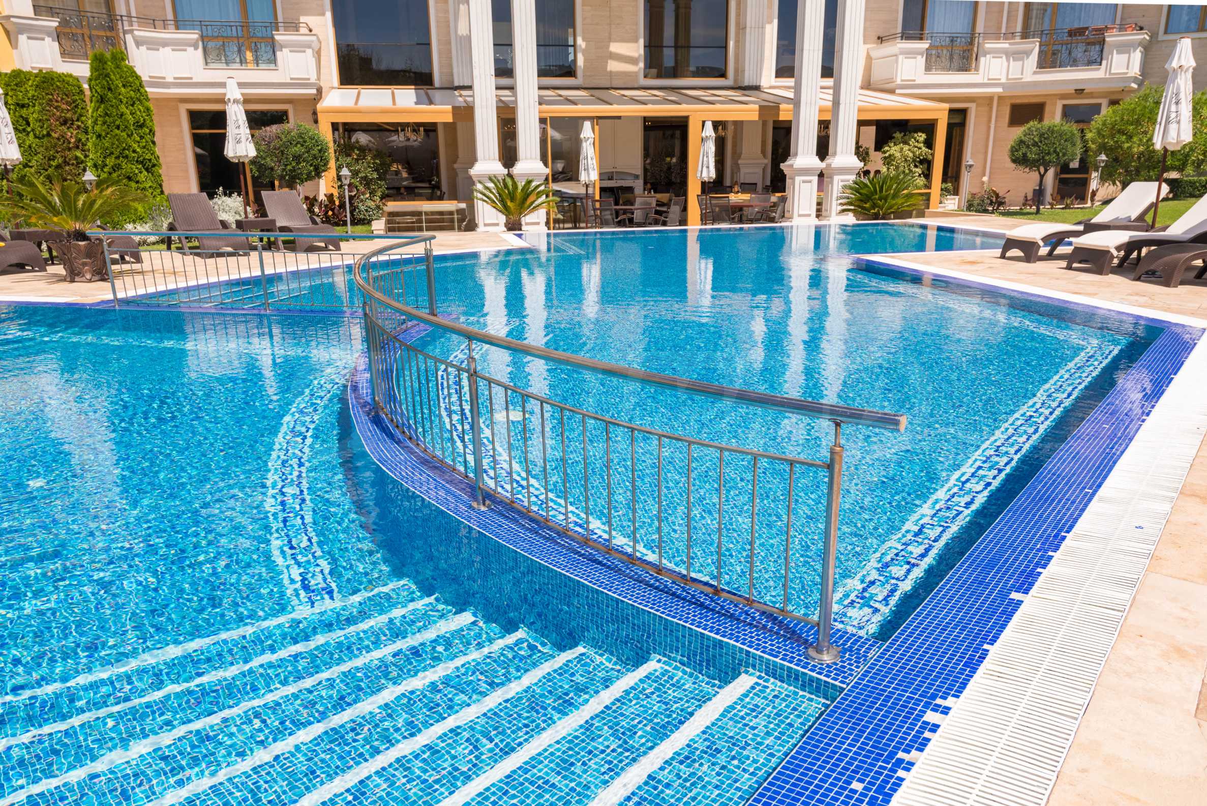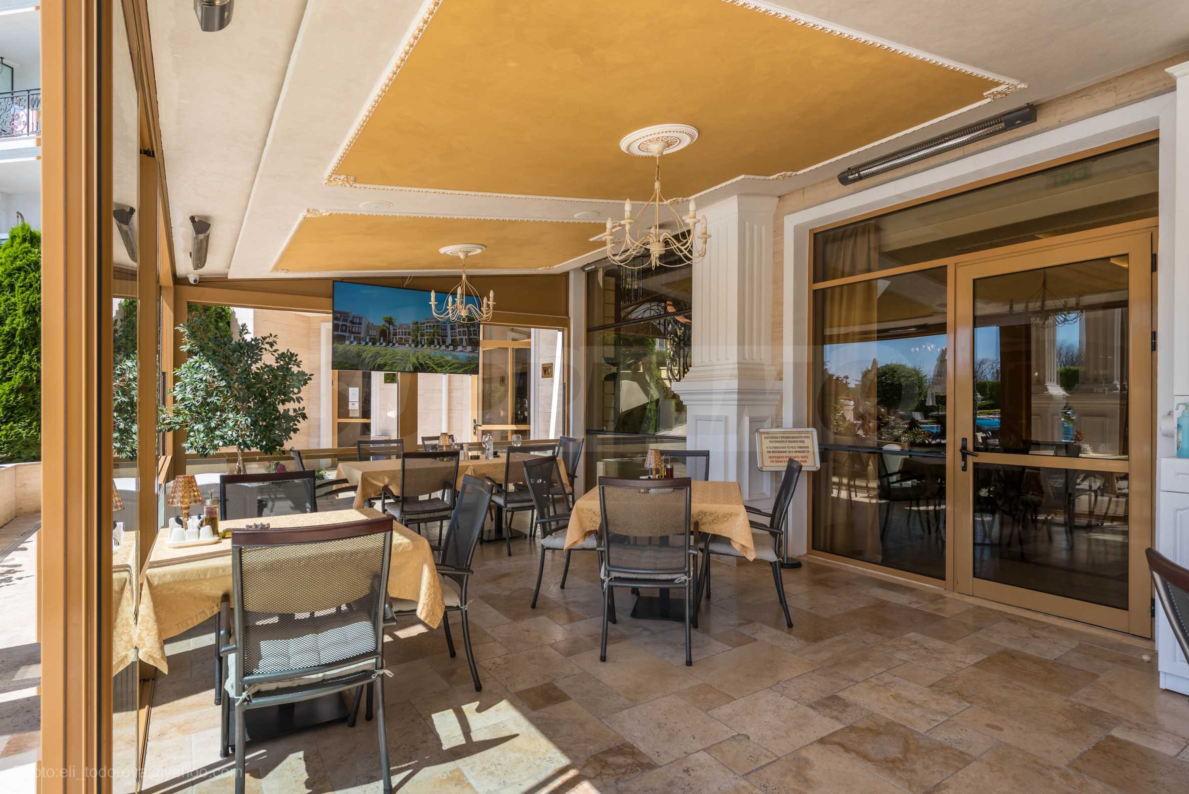 Die beiden Außenpools sind im Sommer von Mai bis September geöffnet. Für die Kinder wurde ein moderner Spielplatz gebaut und der Innenbereich des Komplexes mit einer Fläche von 6060 qm (Gebäude A 4330 qm + Gebäude B 1730 qm) ist gut gepflegt. Die beiden Gebäude des Komplexes verfügen über ein Untergeschoss mit Parkplätzen und Kellern, im größeren Gebäude befindet sich die Rezeption. Die Heizung erfolgt über Wärmepumpen und Klimaanlagen, was auch in den kalten Wintermonaten für eine angenehm warme Umgebung sorgt.