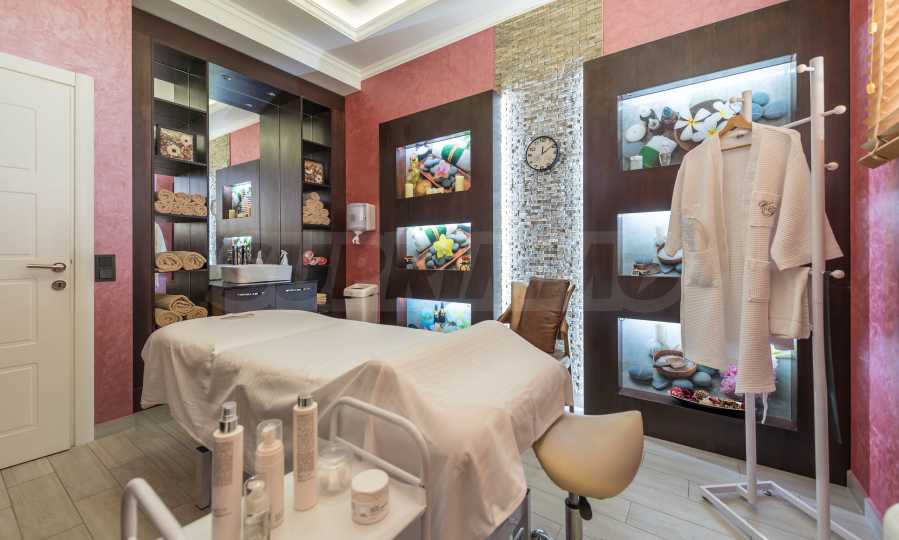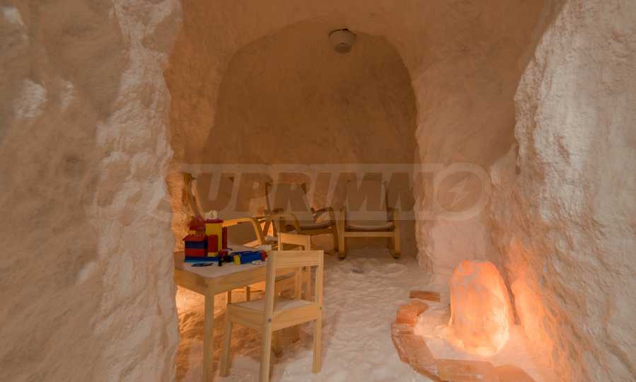 - Spa-Zentrum, in dem Sie eine Sauna, ein Dampfbad, ein russisches Bad, einen Salzraum, ein Massagestudio, einen Schönheitssalon, ein Rehabilitationsbüro, Umkleideräume und sanitäre Einrichtungen finden;
