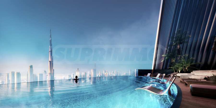 Das Gebäude ist das Ergebnis jahrelanger sorgfältiger Planung und Gestaltung und umfasst Smart-Home-Technologien und -Lösungen. Das Konzept umfasst Linien und Materialien wie Naturstein, Travertin, Walnussfurnier und satiniertes Chrom. Jede Einheit verfügt über ein privates Tauchbecken und bietet den Bewohnern exklusive Privatsphäre in ihrem Zuhause. Der Panoramablick von jeder Einheit offenbart die volle Pracht des Burj Khalifa und schafft ein inspirierendes Wohnumfeld.
