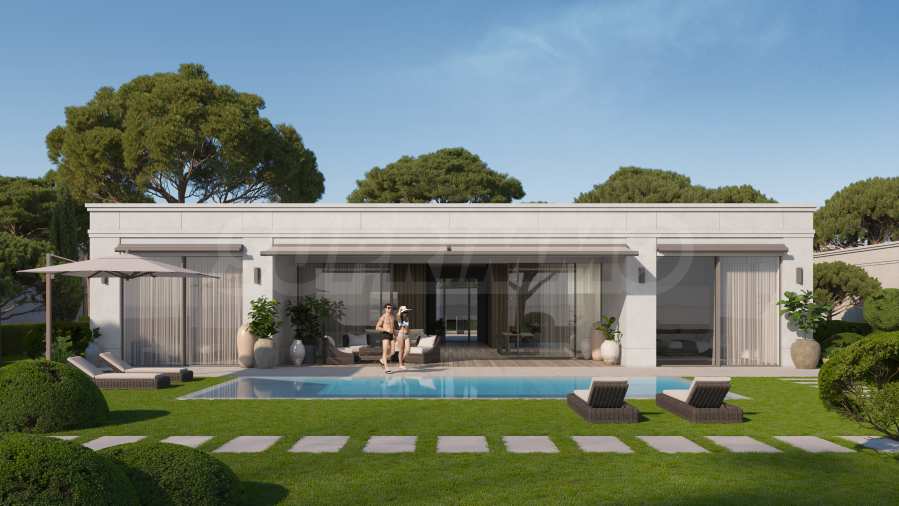 • in der ersten Reihe - 9 eingeschossige Villen, jede mit eigenem Garten und der Option auf einen Swimmingpool, mit 3 Außenparkplätzen;
