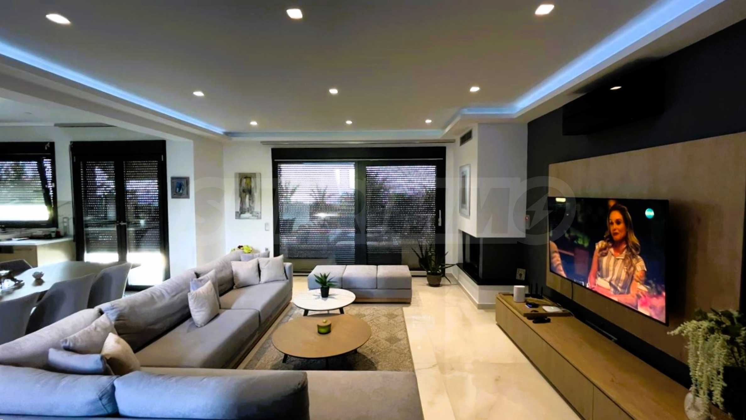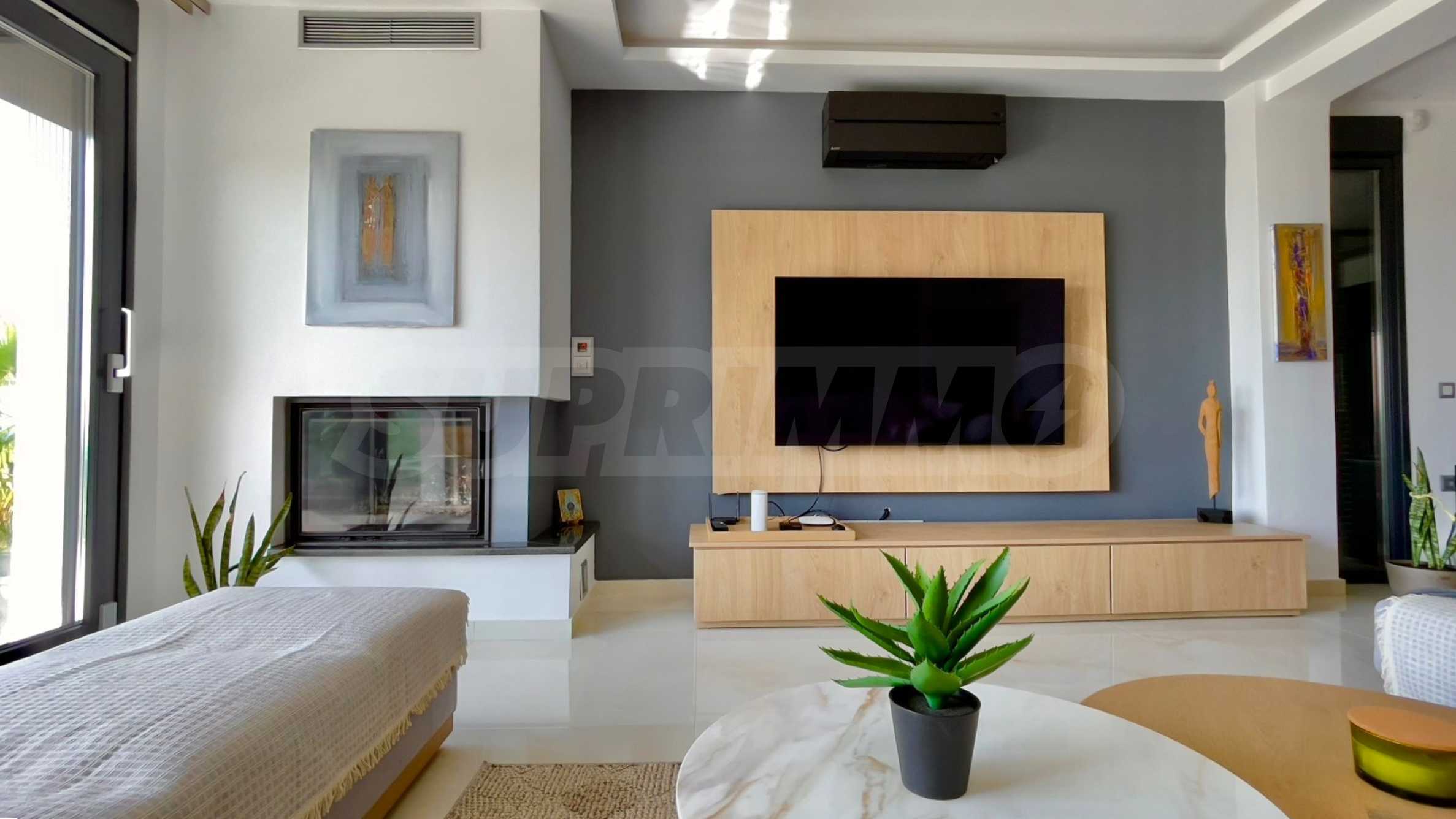 Mit einer Fläche von 305 Quadratmetern verfügt die modernistische Villa über 4 geräumige Schlafzimmer und 3 elegante Badezimmer und bietet Komfort und Komfort für die ganze Familie. Jedes Detail wurde mit Sorgfalt und Geschmack gestaltet und schafft eine Atmosphäre von Raffinesse und Funktionalität.