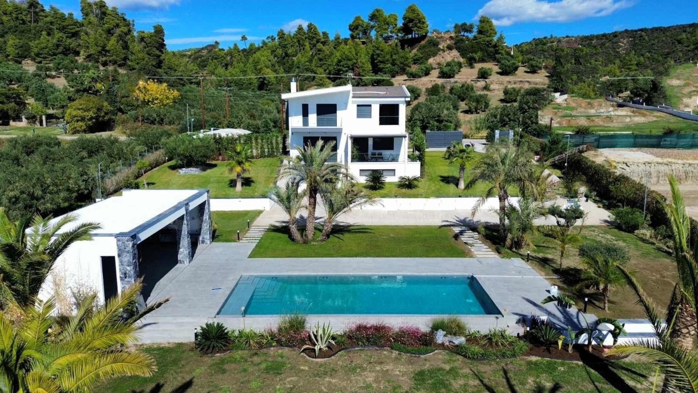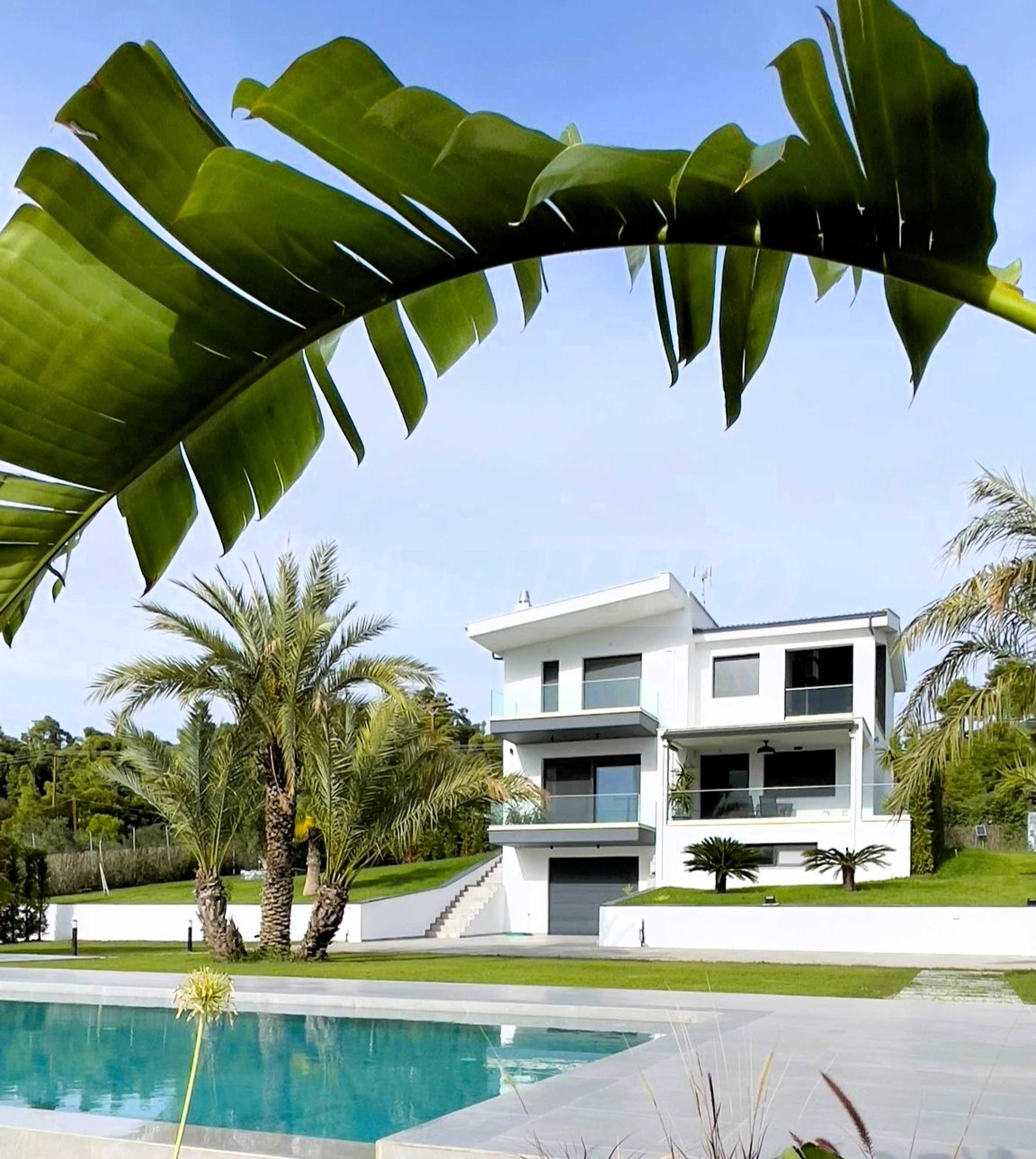 Für Wasserliebhaber bietet das Anwesen auch einen wunderschönen Swimmingpool, der sich ideal für ein erfrischendes Bad oder zum Entspannen unter den warmen Sonnenstrahlen eignet. Diese Residenz ist ein wahrer Schatz der griechischen Küste und vereint modernes Design und natürliche Schönheit in einem.