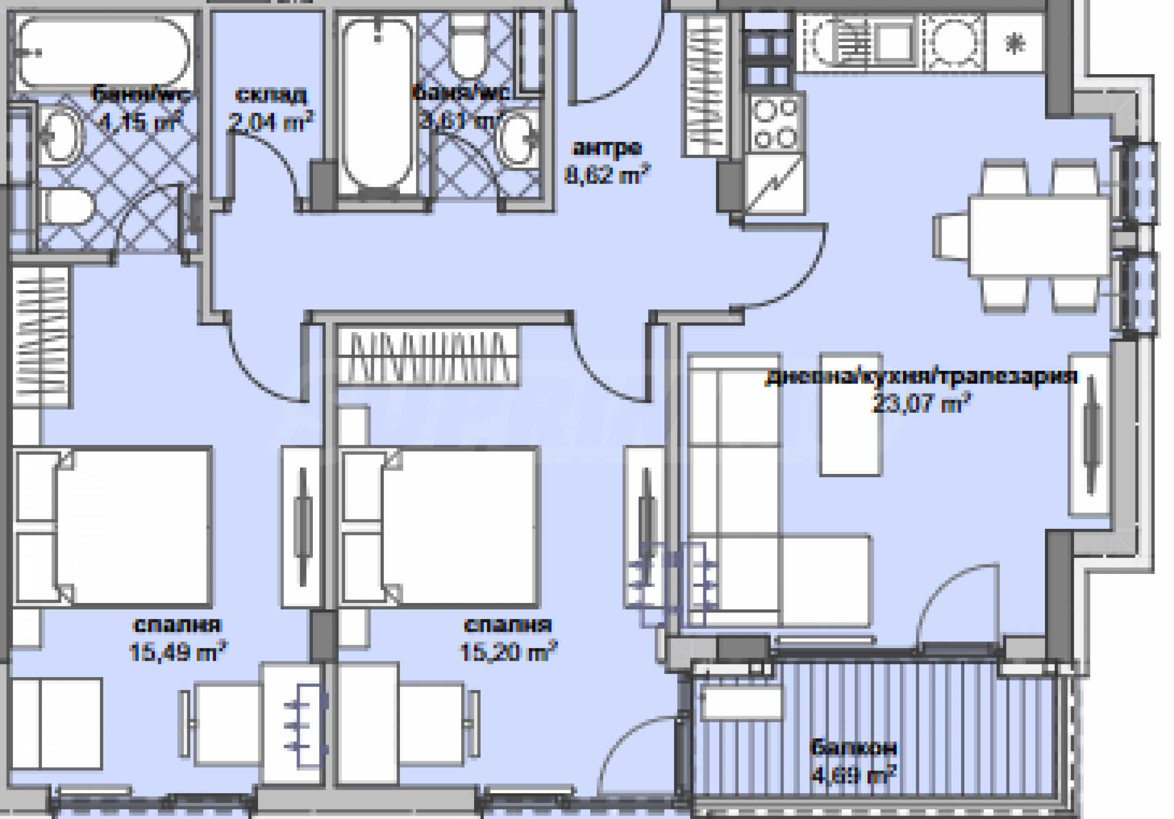 Wir präsentieren eine Zwei-Zimmer-Wohnung in einem modernen Neubau im Sofiaer Stadtteil „Lyulin 6“. Die Wohnung befindet sich in verkehrsgünstiger Lage, in unmittelbarer Nähe des Kaufland-Hypermarkts und des Pulse Fitness & Spa West Parks, mit schneller Anbindung an die Ringstraße. In der Nähe des Gebäudes befinden sich ein Kindergarten, öffentliche und private Schulen, ein Tennisclub, ein Krankenhaus, Geschäfte und ein kleines Einkaufszentrum. Dies macht die Wohnung zu einer ausgezeichneten Wahl für Familien und Menschen, die Wert auf Komfort und gute Verkehrsanbindung legen.