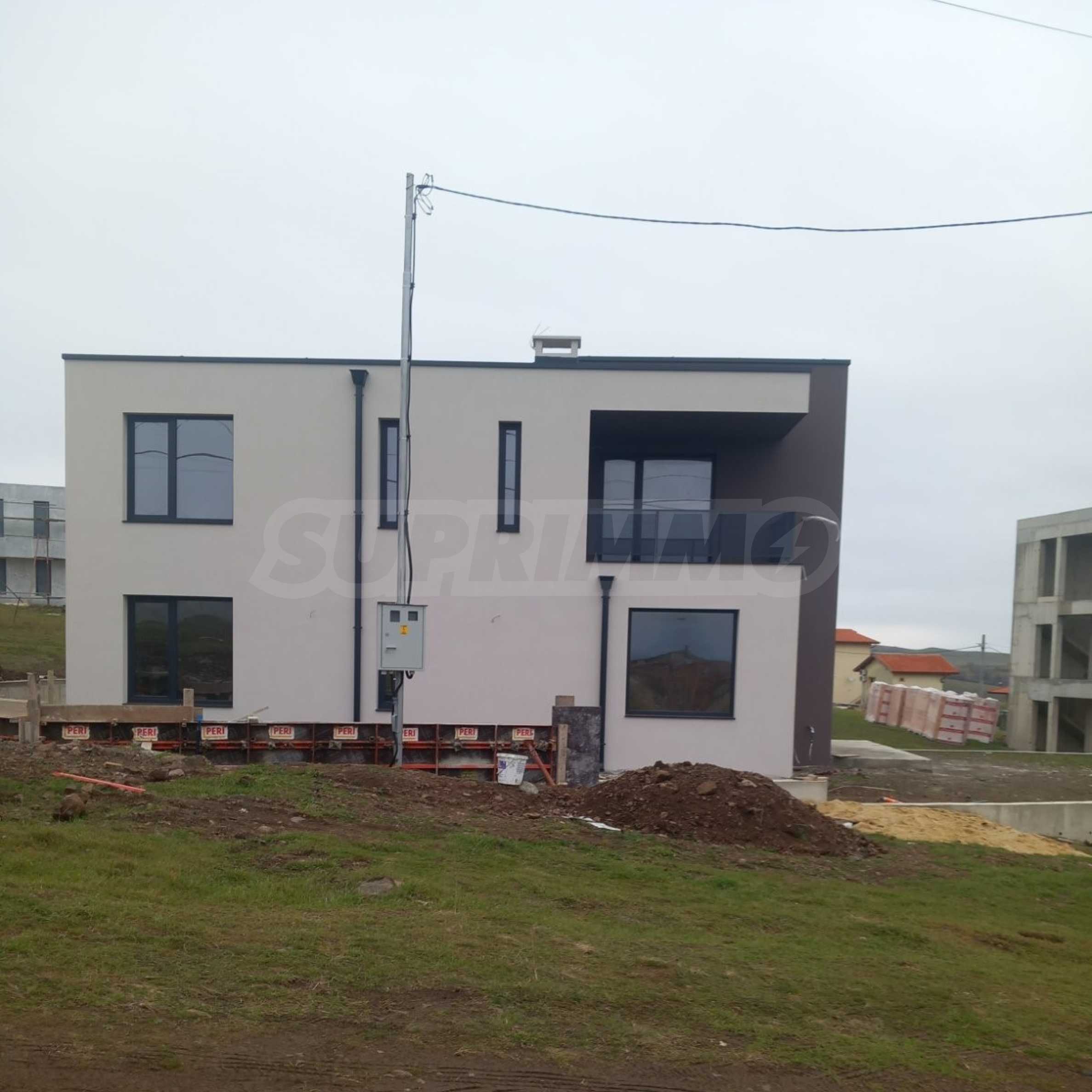 Wir bieten eine freistehende, zweistöckige Villa im modernen Stil im Dorf Laka, in der Nähe von Burgas und Pomorie, zum Verkauf an.