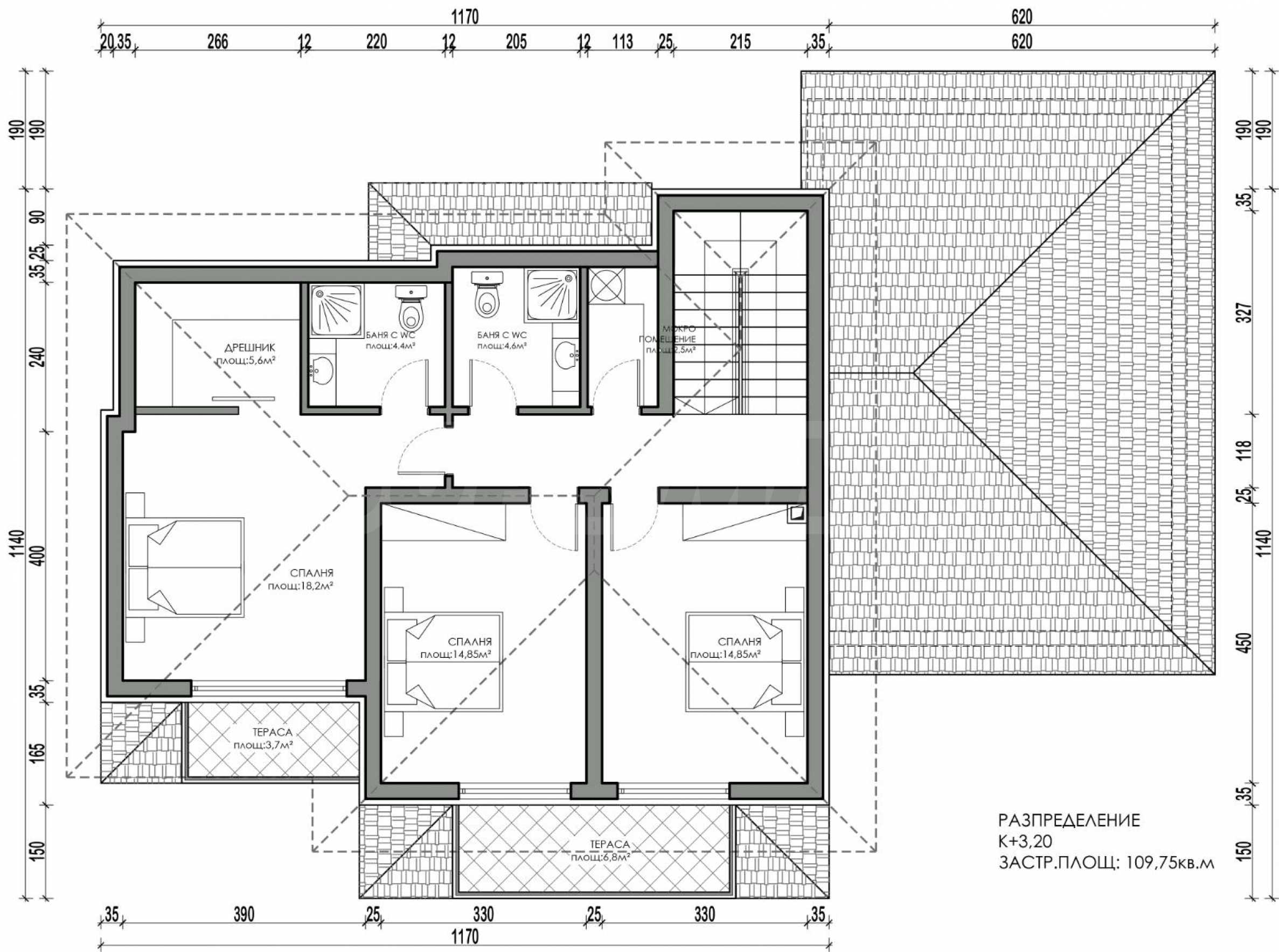 - Fläche: Hof 1000 qm, Gesamtfläche des Hauses – 275 qm. mit funktionaler Verteilung: