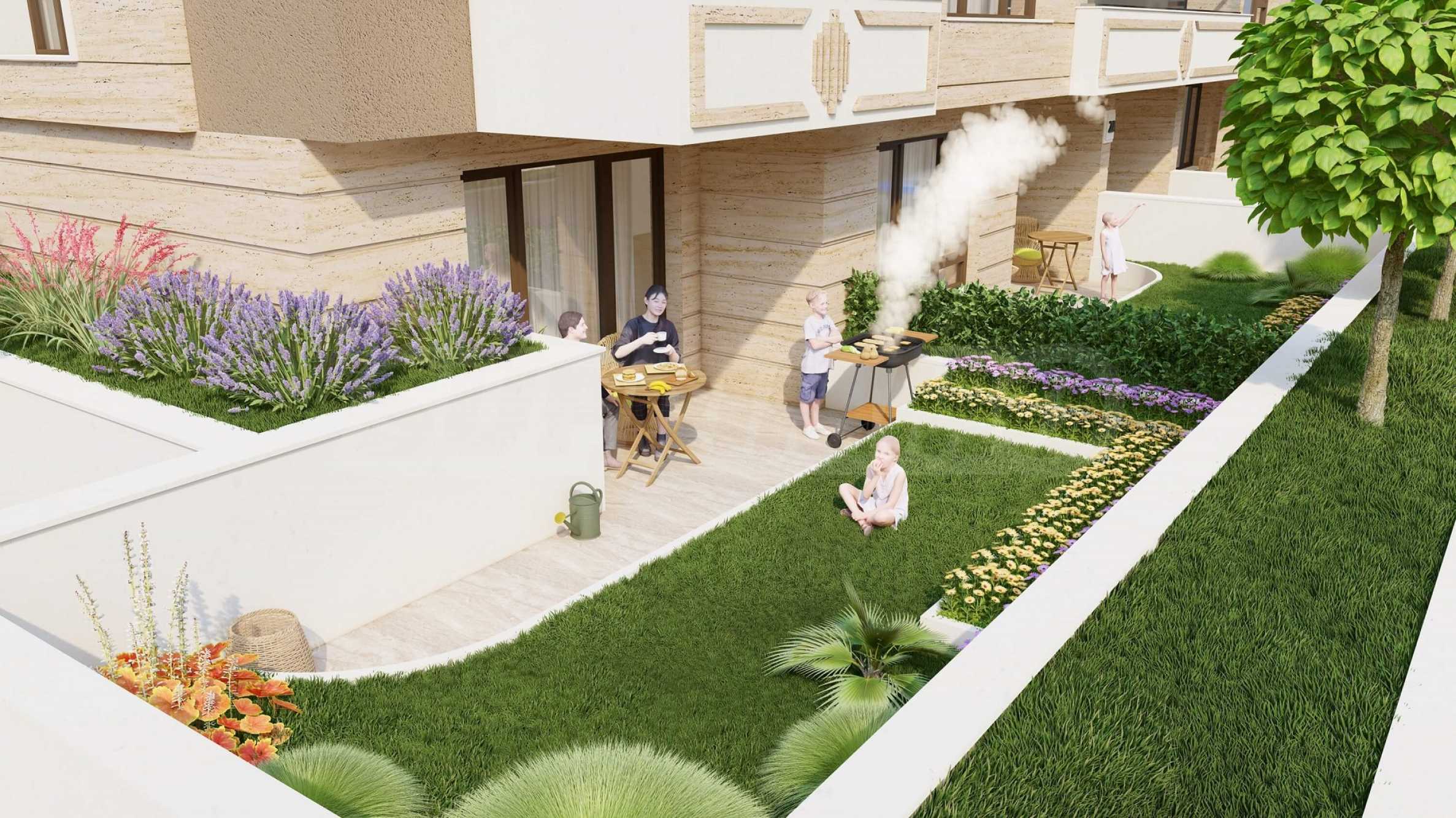 Der Komplex besteht aus zwei Gebäuden, die überwiegend nach Südosten ausgerichtet sind, und alle Zweizimmerwohnungen sind vollständig nach Südosten ausgerichtet. Die Gebäude umfassen 74 Wohnungen – Zweizimmer- und Dreizimmerwohnungen – und im ersten Stock von Gebäude 2 sind die Wohnungen mit begrünten Innenhöfen ausgestattet. Darüber hinaus stehen 84 Tief- und oberirdische Garagen und Stellplätze zu Preisen ab 14.000 Euro zur Verfügung.