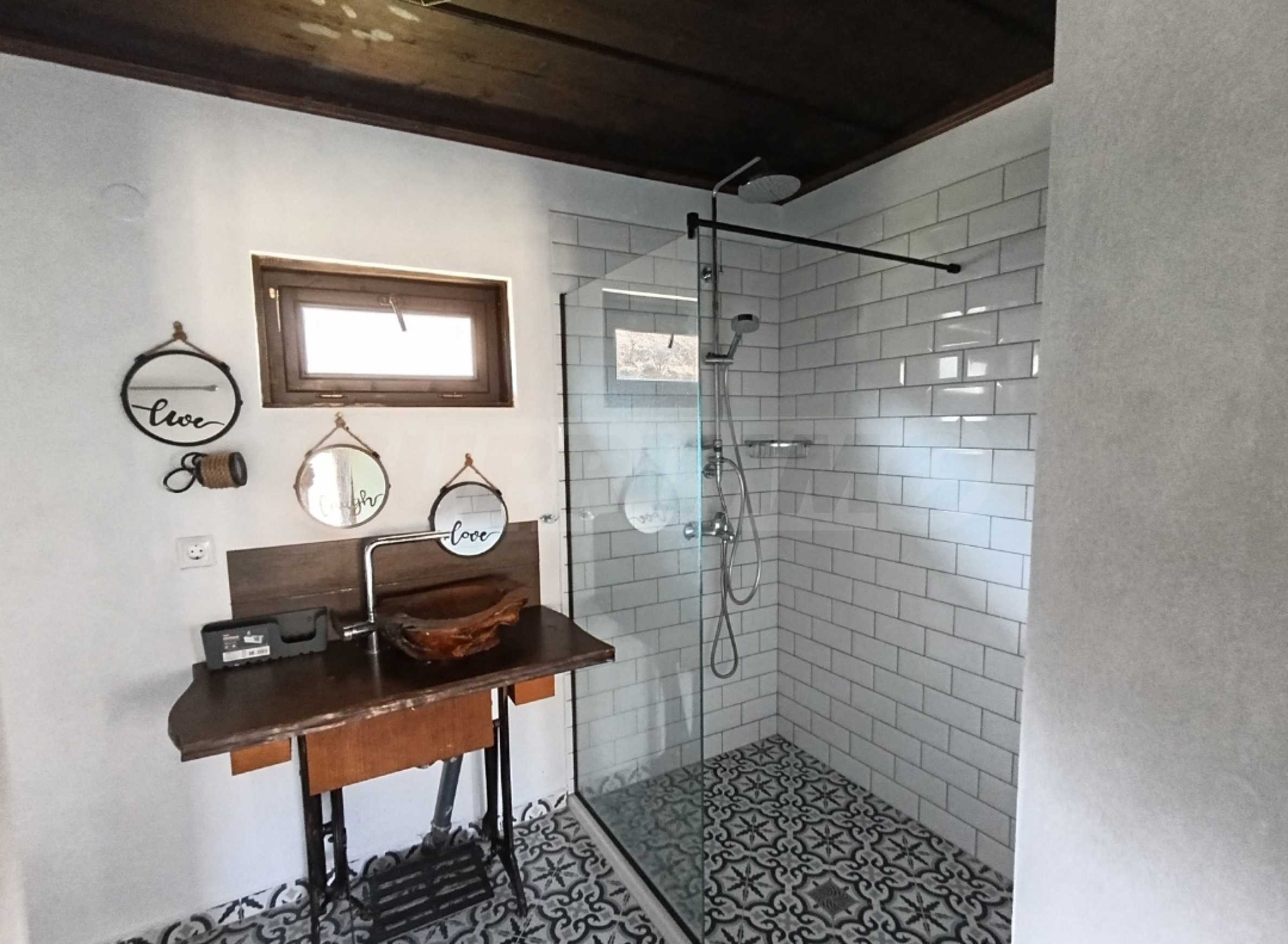 • Zweiter Stock: Zwei gemütliche Schlafzimmer, jedes mit eigenem Bad, einem kleinen Wintergarten für Blumen und einem Schrank/Garderobe. Eine Holztreppe verbindet die Etagen und setzt einen zusätzlichen traditionellen Akzent.