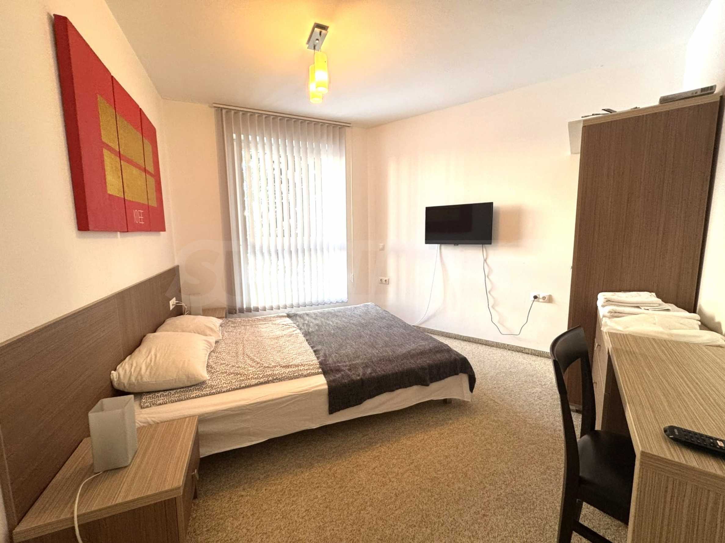 St. George Palace ist einer der luxuriösesten Ganzjahreskomplexe in Bansko, mit einem weitläufigen Wellnessbereich mit Massageangeboten und einem Panoramablick auf Bansko, Pirin und Rila. Der Komplex verfügt über ein Restaurant, das traditionelle bulgarische, italienische und europäische Küche serviert, sowie einen Spielbereich für Kinder. Das Aparthotel verfügt über 2 Bars: eine Sportbar mit Billardtisch und Geräten sowie eine Panorama-Lobbybar mit 50 Sitzplätzen und Bergblick. Die Gäste können im Innenpool und im Whirlpool entspannen oder das ausgestattete Fitnessstudio und den Konferenzsaal (100-120 Sitzplätze) sowie die folgenden Dienstleistungen nutzen: Wäscherei, Bügeln, chemische Reinigung, Safes an der Rezeption, Miete - Auto, Ausflüge und Transfers.