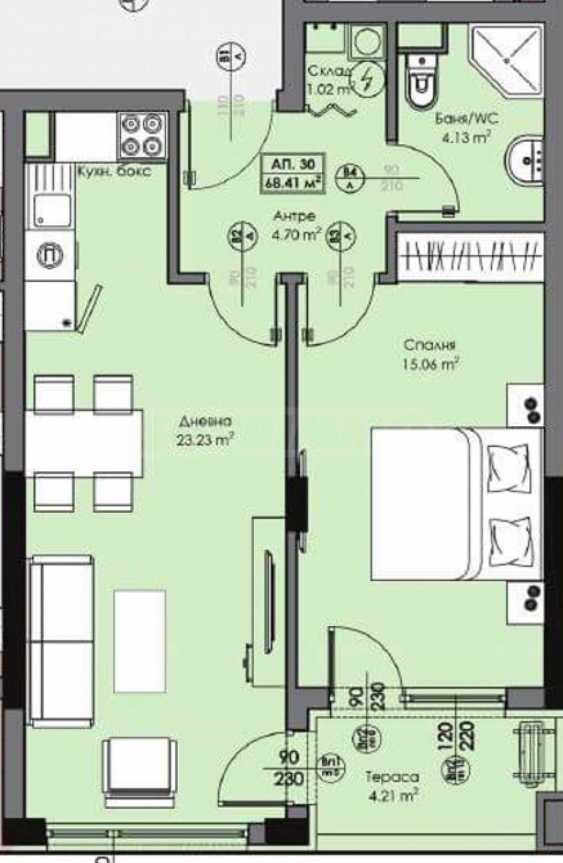 Wir bieten zum Verkauf eine Einzimmerwohnung in einem modernen Wohngebäude in einem neu entstehenden Gebiet an – dem Madika-Viertel im Bezirk Burgas. "Slawejkow".