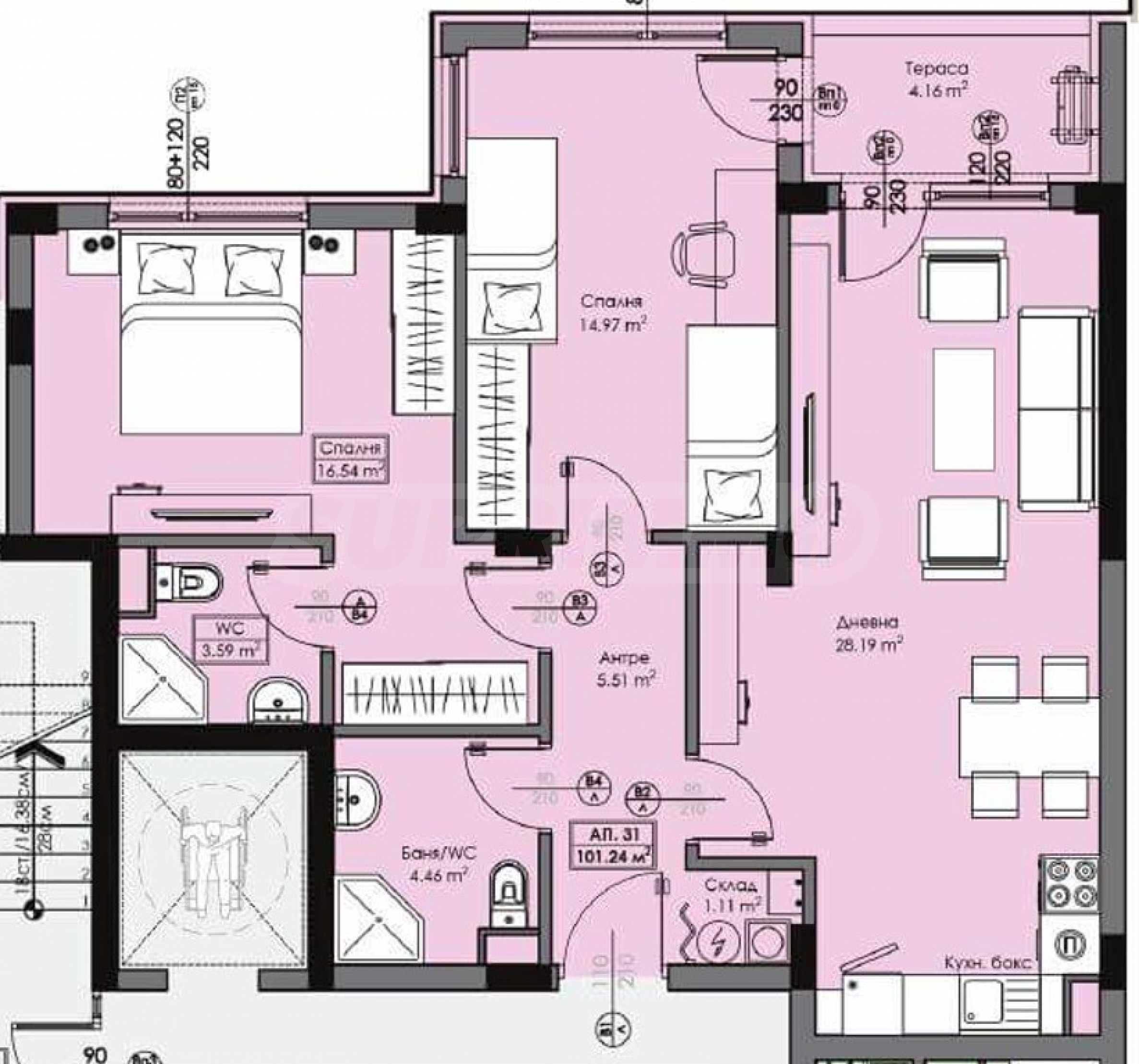 Wir bieten zum Verkauf eine Dreizimmerwohnung in einem modernen Wohngebäude in einem neu entstehenden Gebiet an – dem Madika-Gebiet im Bezirk Burgas. "Slawejkow".