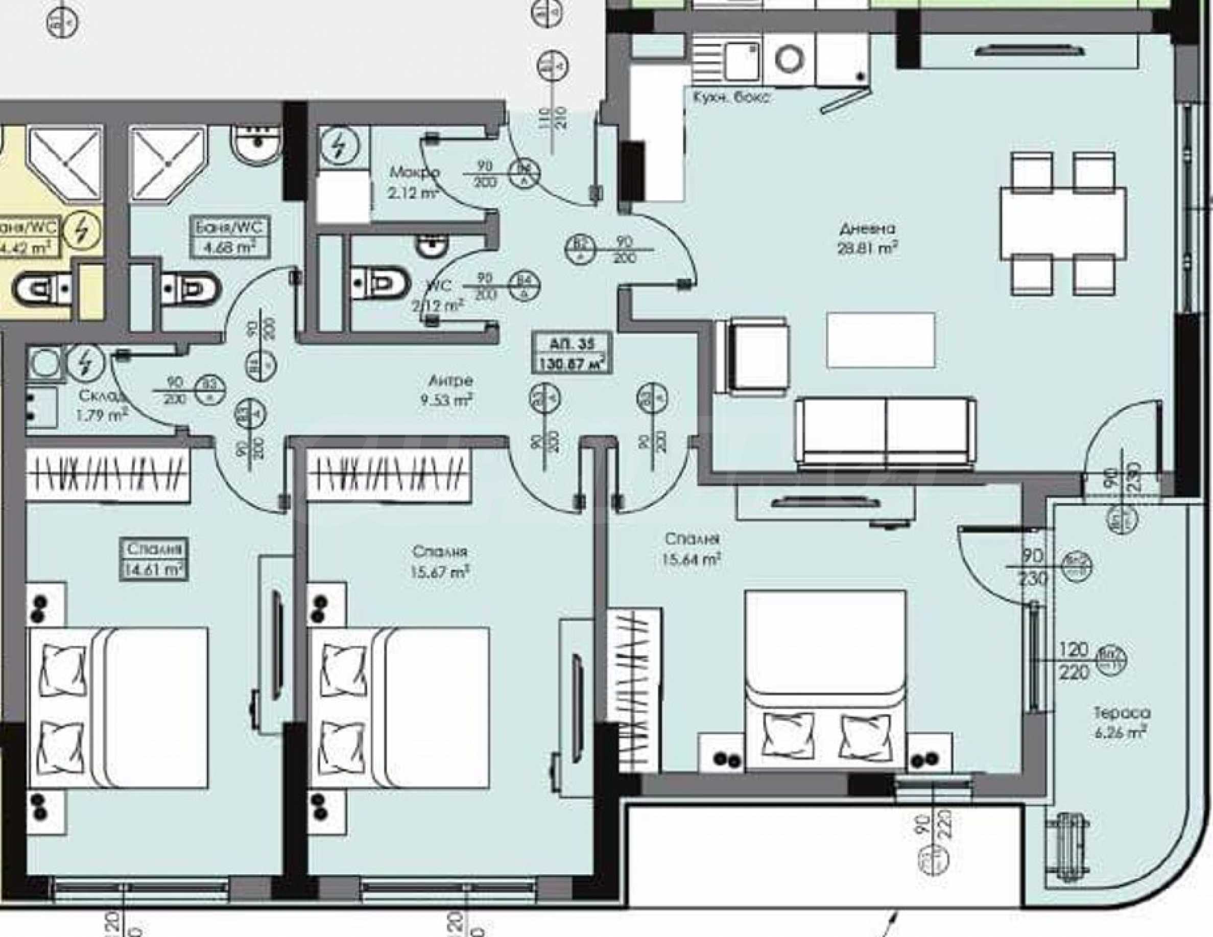 Wir bieten zum Verkauf eine Vierzimmerwohnung in einem modernen Wohngebäude in einem neu entstehenden Gebiet an – dem Madika-Viertel im Bezirk Burgas. "Slawejkow".