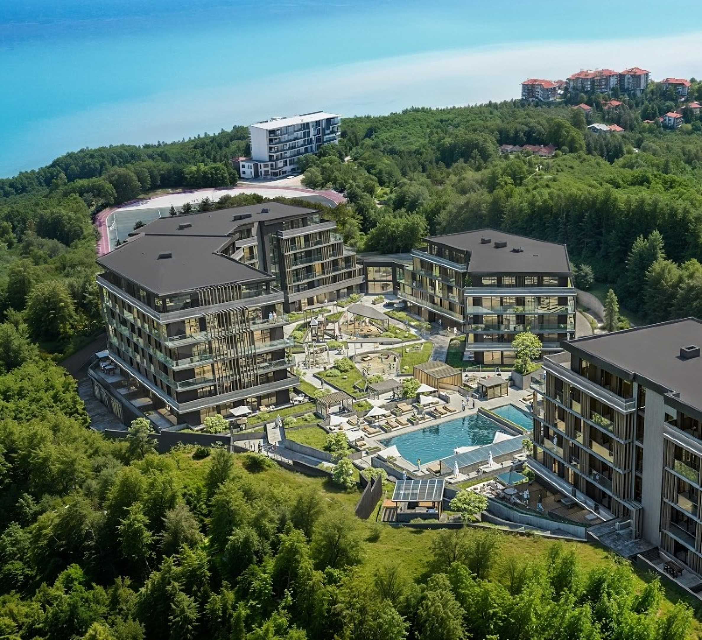 Der Komplex besteht aus vier fünfstöckigen Gebäuden und liegt nur 15 Minuten von den schönsten Stränden von Warna entfernt. Auf einer Gesamtfläche von 15.000 m² bietet das Projekt Studios sowie Ein- und Dreizimmerwohnungen mit atemberaubendem Meerblick auf der einen und Eichenwald auf der anderen Seite. Drei der Gebäude sind durch einen Innenhof mit ansprechender Landschaftsgestaltung und Sitzgelegenheiten im Freien miteinander verbunden.