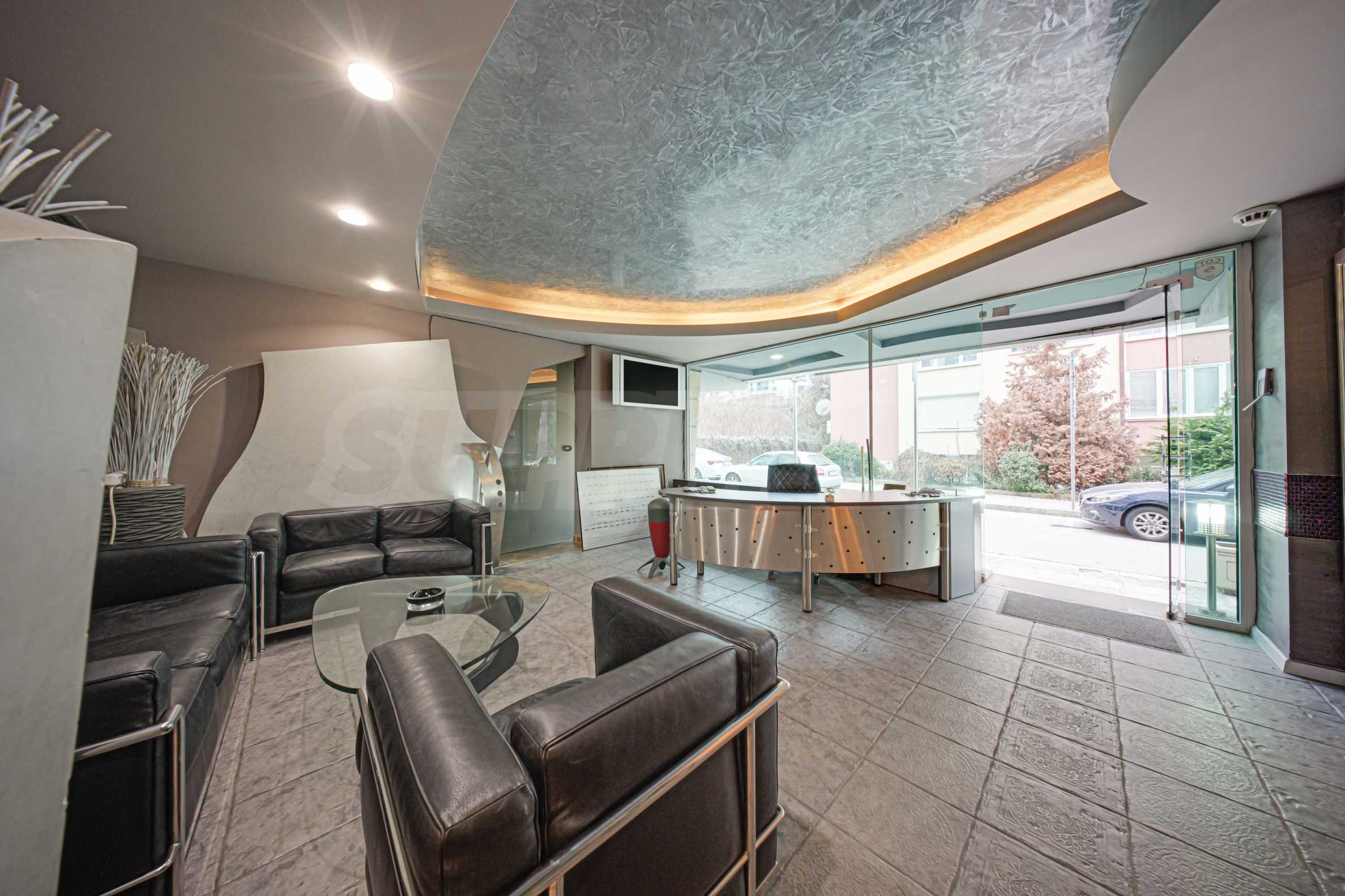 Das Gebäude verfügt über moderne Annehmlichkeiten, Klimaanlage, Videoüberwachung und Sicherheitsdienst. In der Nähe gibt es Parkmöglichkeiten und eine gute Anbindung an andere Stadtteile von Sofia.