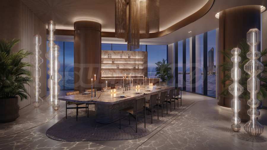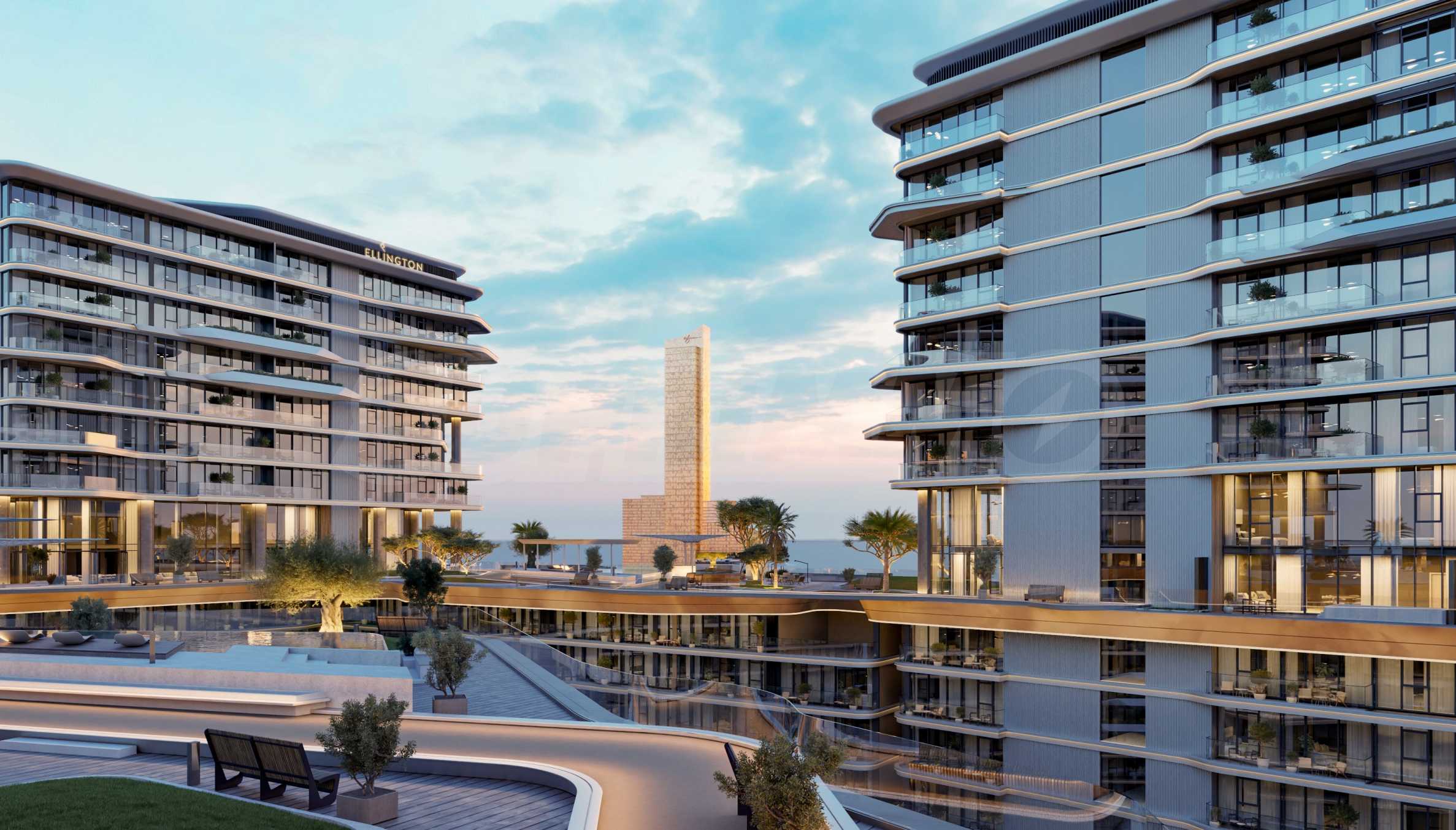 Der Komplex liegt in erster Linie und bietet einen atemberaubenden Blick nicht nur auf den Persischen Golf, sondern auch auf den endlosen Horizont. Das Projekt besteht aus vier ikonischen Gebäuden mit jeweils 20 Stockwerken, die nahtlos durch Brücken miteinander verbunden sein sollen. Diese Verbindungen bieten nicht nur einen nahtlosen Zugang zu den Annehmlichkeiten benachbarter Gebäude, sondern eignen sich auch hervorragend zum Joggen, für Spaziergänge im Freien und zum Bewundern der atemberaubenden Aussicht auf die Stadtlandschaft.