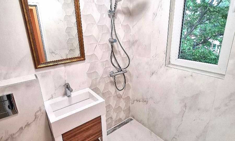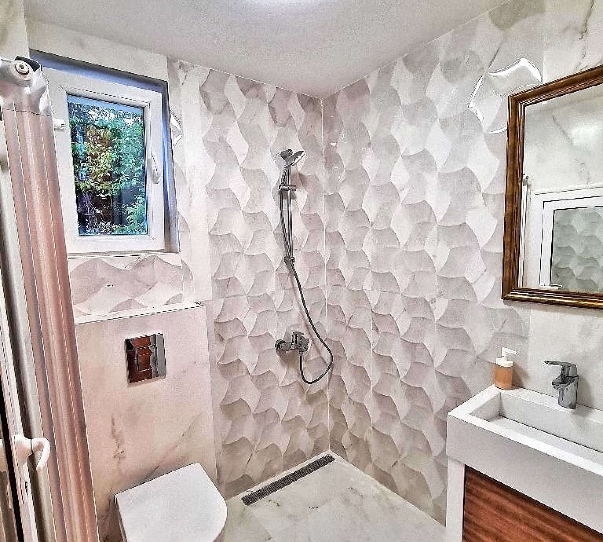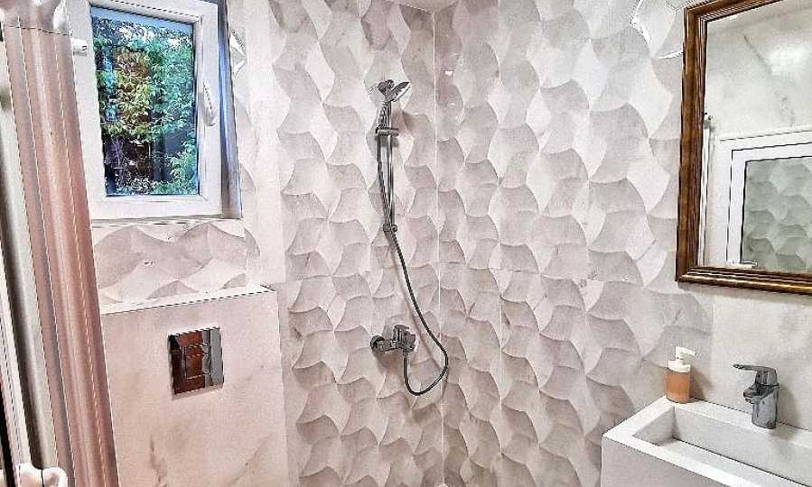Das Haus hat eine bebaute Fläche von 450 m² und liegt in einem wunderschön gepflegten, 650 m² großen Garten mit Nadel- und Laubbäumen, die ein Gefühl von natürlicher Gemütlichkeit und Harmonie vermitteln. Im Untergeschoss befinden sich ein Heizraum mit Gasanschluss sowie Lagerräume mit normaler Beleuchtung und direktem Zugang zum Garten. Die Hauptwohnebene bietet eine repräsentative Eingangshalle, ein geräumiges Wohnzimmer mit Kamin, ein Esszimmer und eine voll ausgestattete Küchenzeile mit Zugang zu einer Terrasse mit Grillplatz. Auf derselben Etage befinden sich ein weiteres möbliertes Schlafzimmer, ein Badezimmer und ein praktischer Abstellraum, der auch als Kleiderschrank genutzt werden kann. Die dritte Ebene ist vollständig als Schlafbereich vorgesehen und umfasst drei Schlafzimmer, von denen eines möbliert ist und über einen Balkon verfügt, während die anderen beiden unmöbliert bleiben und die Möglichkeit einer individuellen Gestaltung entsprechend den Bedürfnissen der zukünftigen Bewohner bieten. Das Hauptschlafzimmer verfügt über ein eigenes Badezimmer und eine Terrasse, und auf der Etage befinden sich ein weiteres Badezimmer und eine Waschküche.