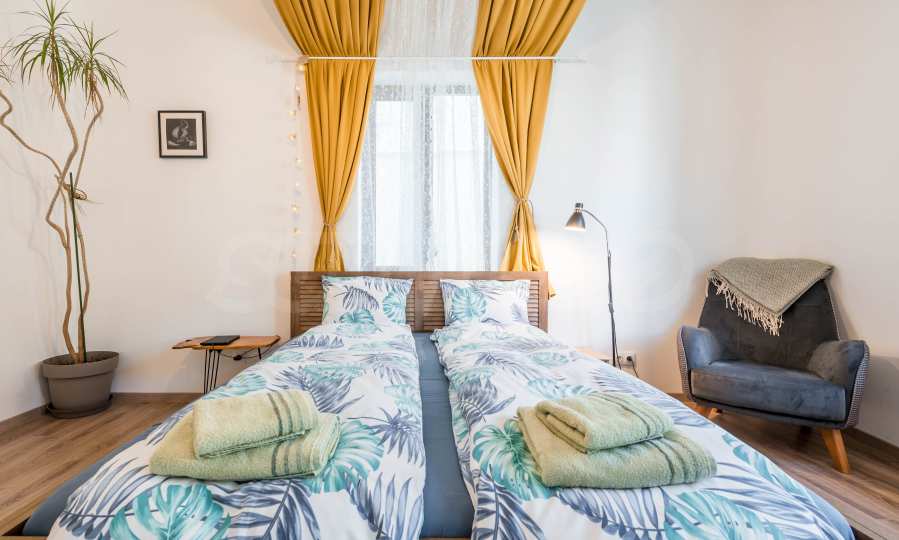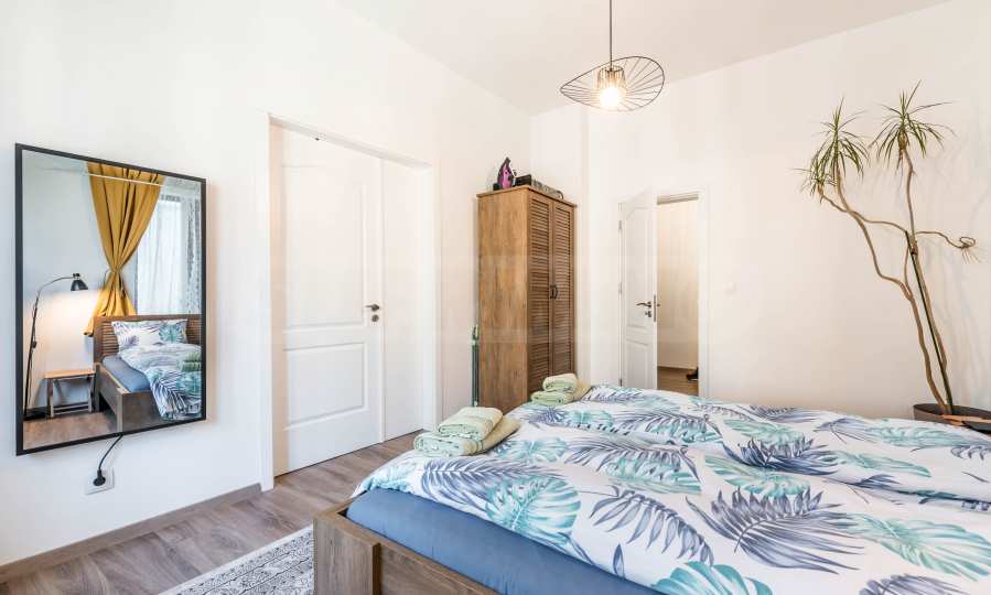 Die Wohnung ist komplett möbliert und mit allem ausgestattet, was Sie zum Wohnen benötigen, wie Möbeln und Elektrogeräten. Das Interieur vereint Eleganz und Wohnkomfort – hochwertige Materialien, helle Töne und sorgfältig ausgewählte Details. Die Beheizung erfolgt über Klimaanlagen im Wohnzimmer und in der Küche sowie Infrarot-Wandheizungen in den Schlafzimmern.