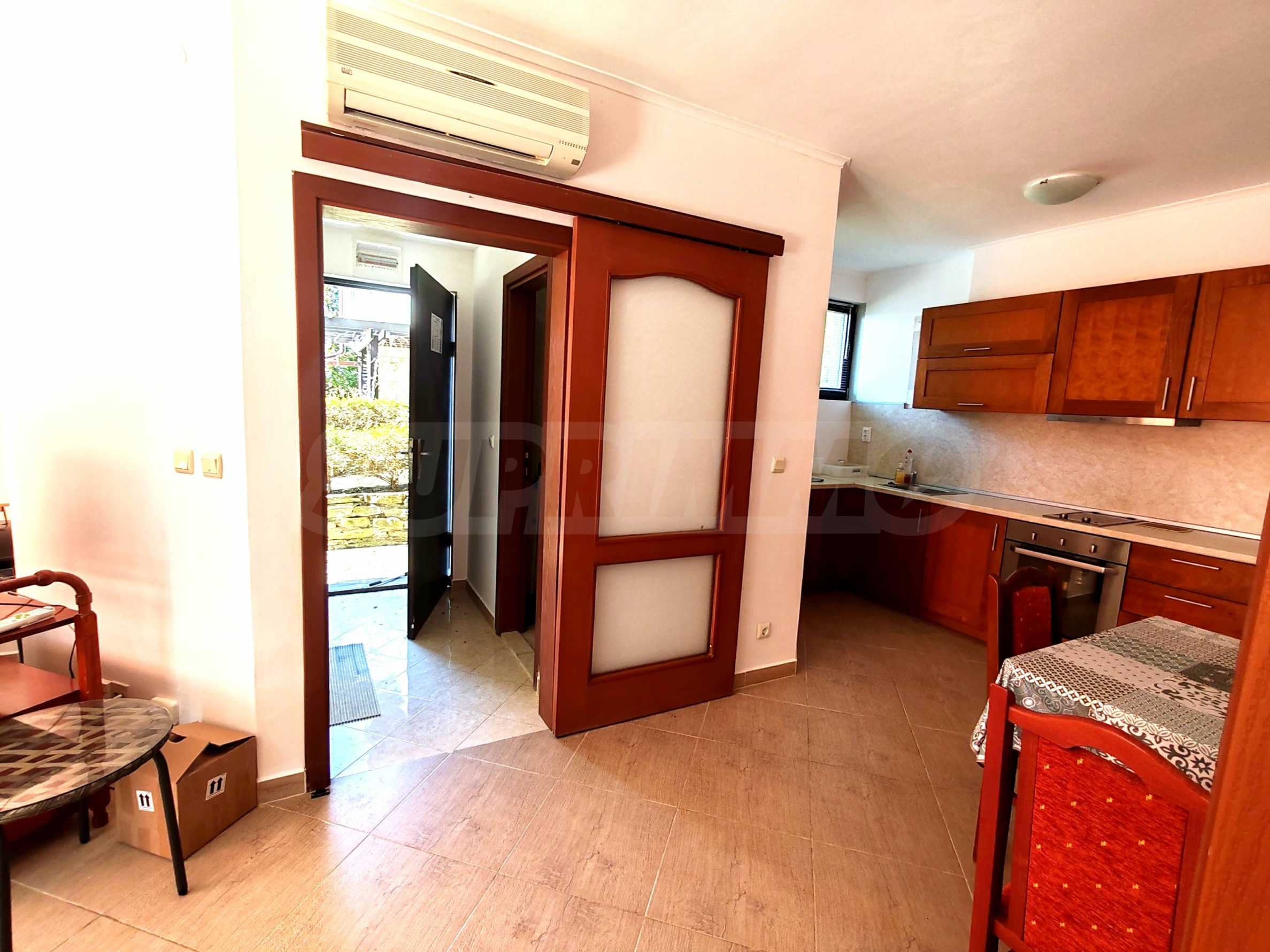 Wir bieten zum Verkauf eine 2-Zimmer-Wohnung an, die die gesamte erste Etage in einem zweistöckigen Doppelhaus einnimmt, in einem beliebten geschlossenen Komplex in der Nähe von Sonnenstrand.
