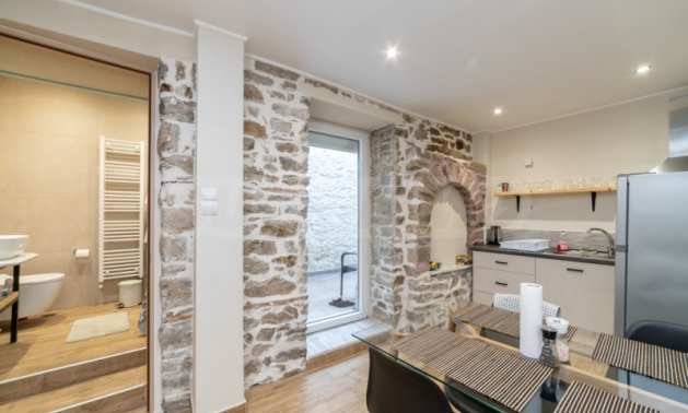 Ein freistehendes Haus im Zentrum von Kavala, das 2022 vollständig renoviert wurde, bietet eine Gesamtfläche von 157 m² und ist in drei unabhängige Wohnungen, ein Studio und zwei Studios unterteilt. Das Haus erstreckt sich über drei Ebenen. Im Erdgeschoss befindet sich das Studio mit einer Gesamtfläche von 157 m². Es verfügt über einen offenen Wohnbereich mit Schlafzimmer, Küche, Eingang und Bad sowie eine Klimaanlage zum Heizen und Kühlen. Die Treppe zu den beiden Wohnungen im Obergeschoss verfügt über einen separaten Eingang, der den Bewohnern das gewünschte Gefühl von Unabhängigkeit vermittelt. In der Mitte dieser Treppe befindet sich ein Abstellraum für Kleidung oder Saisonartikel der Bewohner. Dort beginnt auch der Beginn der Heizungsrohre, die der neue Eigentümer nach eigenem Ermessen installieren kann. Diese Rohre sind im gesamten Gebäude verlegt und können an Heizkörper angeschlossen werden, um das gesamte Gebäude zu beheizen. Im ersten Stock befinden sich die beiden Studios mit ähnlichem architektonischen Grundriss. Auf der ersten Ebene befinden sich die Küche mit Essbereich, das Wohnzimmer, das Badezimmer und die interne Holztreppe, über die man in die obere Ebene des offenen Schlafzimmers gelangt. Von der ersten Ebene aus hat man von jeder Wohnung aus Zugang zum kleinen, aber charakteristischen Innenhof; eine der beiden Wohnungen hat Zugang zum Balkon mit Blick auf die Stadtlandschaft. Die Wohnungen wurden mit besonderer Sorgfalt hinsichtlich der Qualität und der richtigen Verwendung der Materialien sowie mit der Auswahl eines ausgeprägten Geschmacks und einer ausgeprägten Ästhetik gebaut und stellen ein interessantes Investitionsangebot dar, sei es für die Schaffung eines eigenständigen Wohnsitzes im Stadtzentrum oder für den Betrieb als Gewerbe mit kurzfristigen Mietverträgen. Sie sind voll ausgestattet und möbliert erhältlich. Zur Angabe der Immobilie ist ein Polizeiausweis erforderlich.