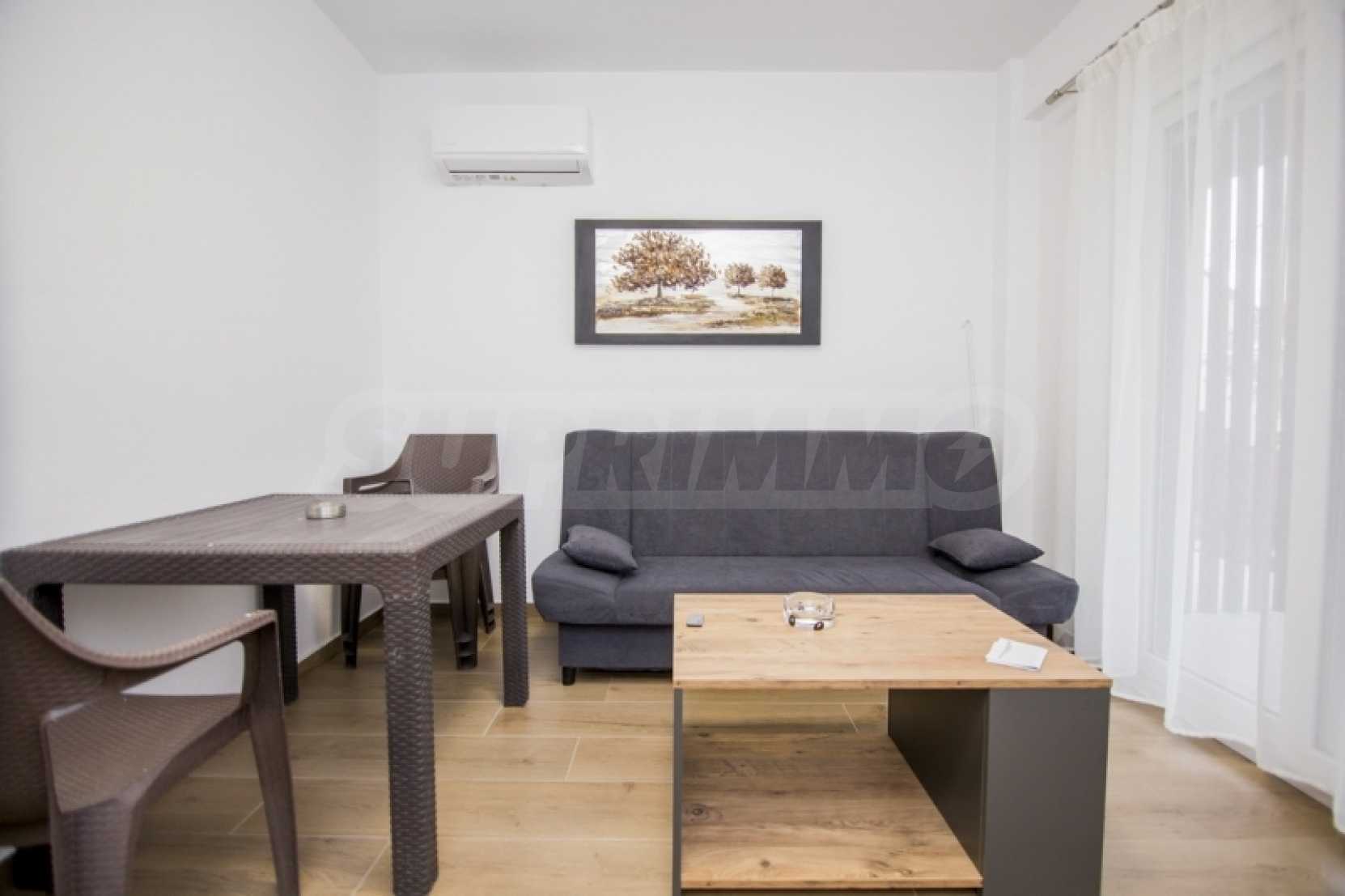 Erdgeschosswohnung mit 34,5 m² im Komplex „Perla“ am Ofrynio-Strand von Kavala. Sie besteht aus einem offenen Wohnzimmer mit Küche, einem Schlafzimmer und einem Badezimmer. Die Wohnung bietet direkten Zugang zum zentralen Pool der Anlage, Kunststoffrahmen mit Moskitonetzen, eine Solaranlage und eine Sicherheitstür. Die Immobilie ist voll möbliert und mit allen Elektrogeräten ausgestattet. Sie liegt nur 250 m von der Hauptfußgängerzone und 350 m vom berühmten Strand der Region entfernt. Sie eignet sich ideal als Ferienhaus am Meer und ist auch eine hervorragende Investitionsmöglichkeit. Baujahr: 2022. Für eine Besichtigung ist die Vorlage eines Personalausweises erforderlich.