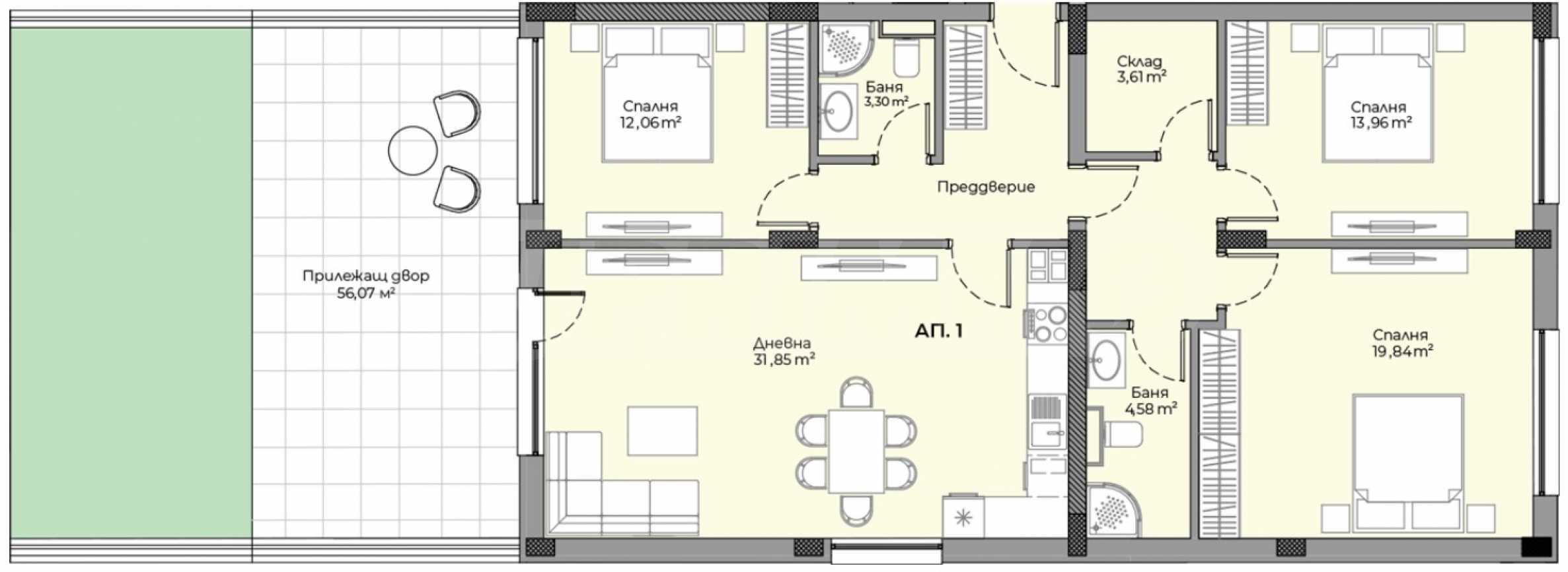 Wir präsentieren Ihnen eine Vierzimmerwohnung in einem neuen Boutique-Wohngebäude im Viertel „Hristo Smirnenski“ – einer der begehrtesten und sich am schnellsten entwickelnden Gegenden von Plovdiv. Die Top-Lage bietet eine schnelle Anbindung an die Ringstraße und ist nur wenige Schritte vom Ruderzentrum entfernt. Schulen, Kindergärten, Supermärkte, Parks, medizinische Zentren und eine Vielzahl von Restaurants befinden sich in unmittelbarer Nähe. Die ruhige und gepflegte Umgebung verbindet Natur mit urbanem Komfort. Weitläufige Grünflächen, Parks und Erholungsgebiete schaffen eine ideale Atmosphäre für Spaziergänge, Sport und Entspannung in der Natur. Die hervorragende Infrastruktur ermöglicht eine bequeme Anbindung an alle wichtigen Punkte der Stadt, und die gute Erreichbarkeit des öffentlichen Nahverkehrs garantiert eine komfortable Fortbewegung. Die kulturellen und historischen Sehenswürdigkeiten von Plovdiv sowie Einkaufszentren wie die Mall Plovdiv sind nur wenige Minuten entfernt.