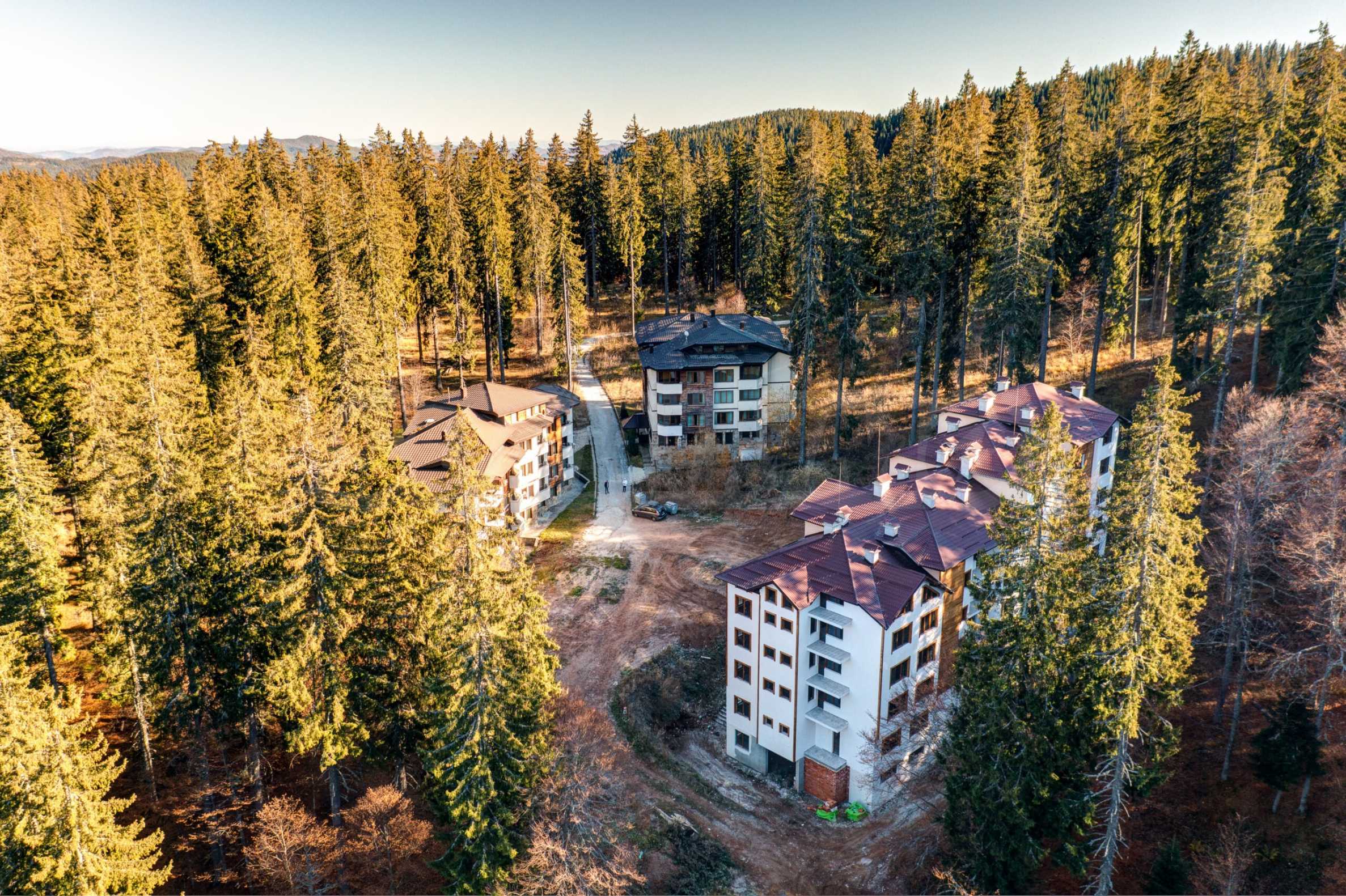 Das belebte Zentrum ist 15 Gehminuten entfernt, das Skizentrum 1 (Studenets) 1,7 km. In der Umgebung des Gebäudes befinden sich Villendörfer, Hotels, Geschäfte und Restaurants, die ein komfortables Umfeld für Erholung und Langzeitnutzung schaffen. Dank der günstigen Anbindung beträgt die Entfernung zum Flughafen Plovdiv 80 km und zum Flughafen Sofia 230 km.