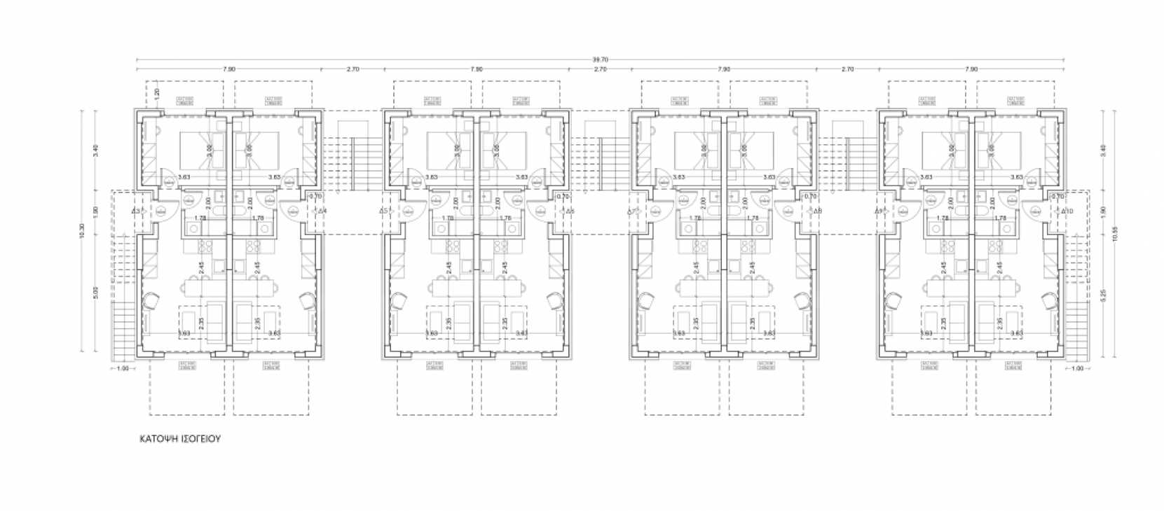 • 10 Erdgeschosswohnungen von 42,34 m² bis 42,64 m², bestehend aus einem Wohnzimmer mit Küche, 1 Schlafzimmer und 1 Badezimmer.