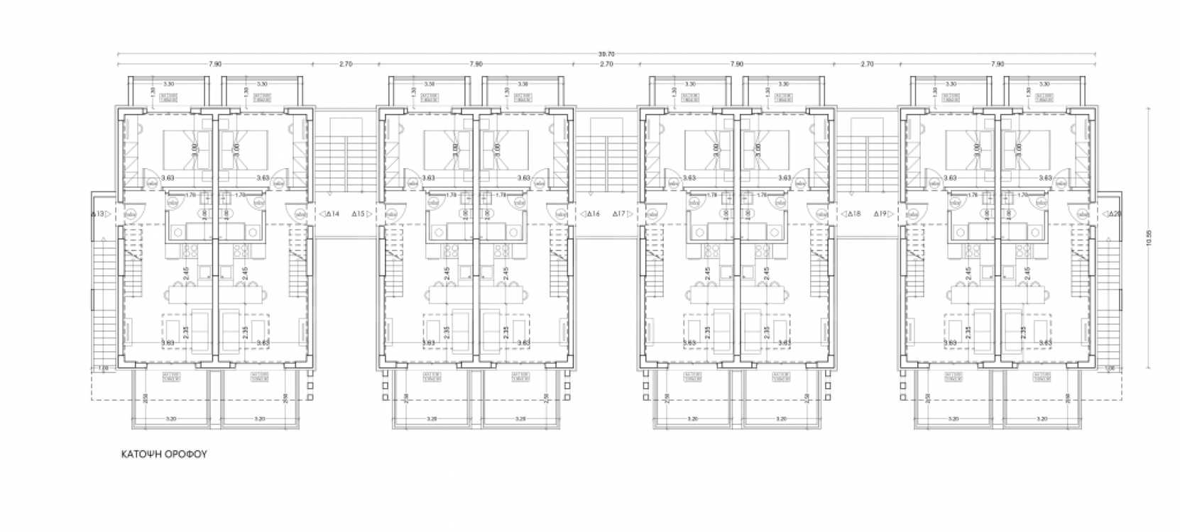 • 10 Wohnungen im ersten Stock mit Loft von 64,37 m² bis 64,84 m², bestehend aus einem Wohnzimmer mit Küche, 2 Schlafzimmern und 2 Bädern.