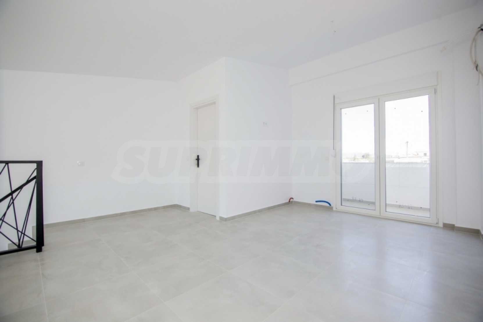 Zum Verkauf steht eine neu gebaute 66,83 m² große Wohnung im ersten Stock mit Dachboden im Komplex „Achilles“ am Ofrynio-Strand in Kavala. Die Wohnung verfügt im ersten Stock über einen offenen Wohn-/Essbereich mit Küche, ein Schlafzimmer, ein Badezimmer und zwei Balkone. Über eine Innentreppe gelangt man in den Dachboden, wo sich ein weiteres Schlafzimmer und ein zweites Badezimmer befinden. Zur weiteren Ausstattung gehören Fliesenböden, Doppelverglasung, Kunststoffrahmen, Sicherheitstür, Solarwarmwasserbereiter, Vorinstallation für Klimaanlage und Vorinstallation für eine Wärmepumpenheizung. Der Außenbereich ist mit Rasen und gepflasterten Flächen angelegt, die auch als Parkplatz für die Bewohner dienen können. Die Wohnung liegt nur 450 m von der Hauptfußgängerzone entfernt und ist nach Westen ausgerichtet. Im Umkreis von 7 km befinden sich das Museum und die archäologische Stätte von Amphipolis. Baujahr 2024. Zur Besichtigung der Immobilie ist die Vorlage Ihres Personalausweises erforderlich.