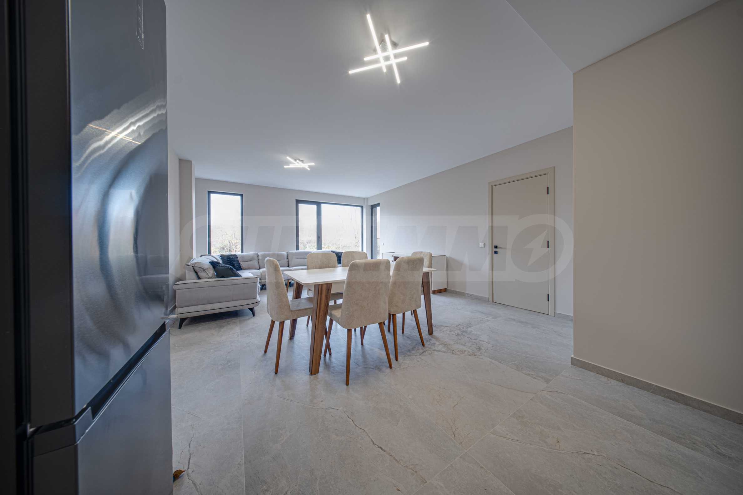 Die Böden bestehen aus hochwertigen Granitfliesen und Naturparkett, die Wände sind mit Latex in neutralen Farben gestrichen, und die hochwertigen Möbel und Geräte sind individuell gestaltet.