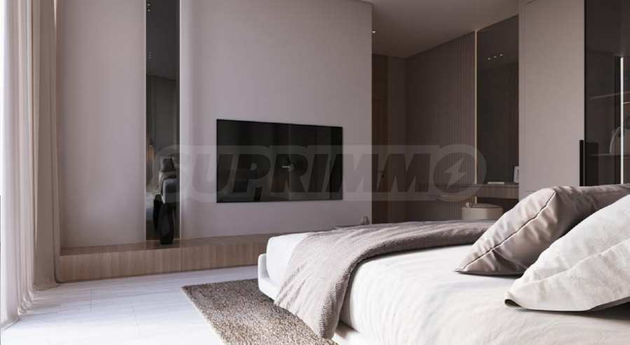 Das Gebäude empfängt seine Bewohner mit einer eleganten, großzügigen Lobby mit Rezeption sowie Bereichen zur Entspannung und Geselligkeit. Die Innenarchitektur beeindruckt mit hohen Decken und luftigen Räumen und die Gestaltung der Gemeinschaftsbereiche zeichnet sich durch eine Kombination aus hellen Tönen und Holzakzenten aus, die Wärme und ein Gefühl der Gemütlichkeit erzeugen. Die verwendeten Texturen, die sorgfältig ausgewählten Möbel und die Anwesenheit natürlicher Pflanzen verleihen dem Innenraum Leben und Harmonie. Darüber hinaus befinden sich im Erdgeschoss ein Ladenlokal und eine Grünfläche zum Entspannen.