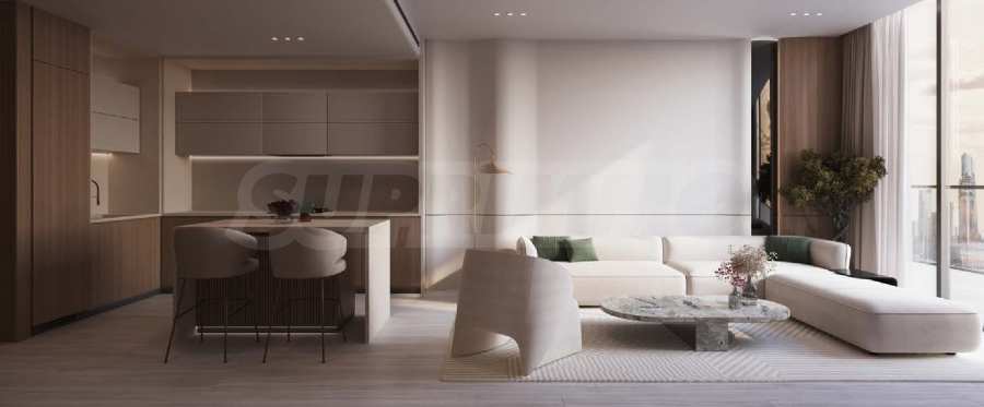 Wie die Gemeinschaftsbereiche verfügen auch die Apartments über hohe Decken und Erkerfenster, die die Räume mit Licht durchfluten und einen herrlichen Blick auf den Dubai Creek bieten. Jedes Haus ist mit Liebe zum Detail gebaut – helle Töne, natürliche Elemente wie Holz und Stein, in harmonischer Kombination mit Chrom und moderner Beleuchtung, die die Finesse des Interieurs unterstreicht.