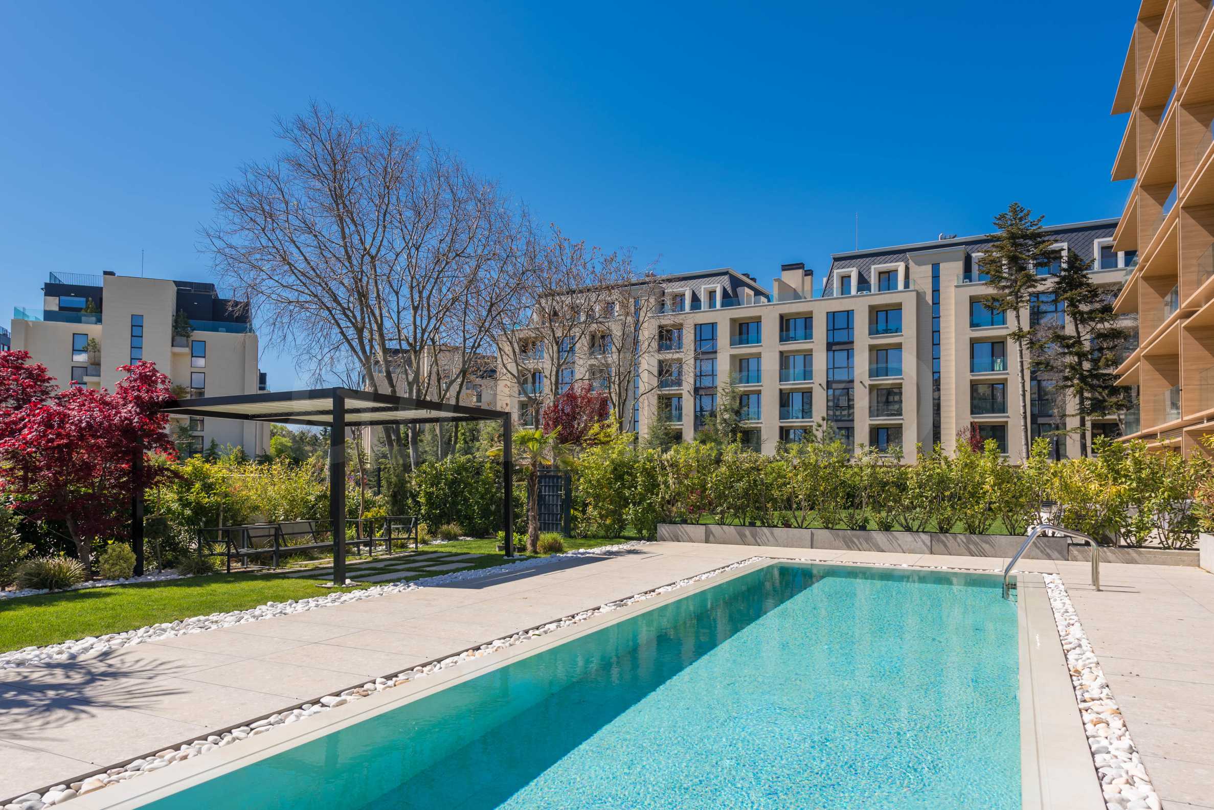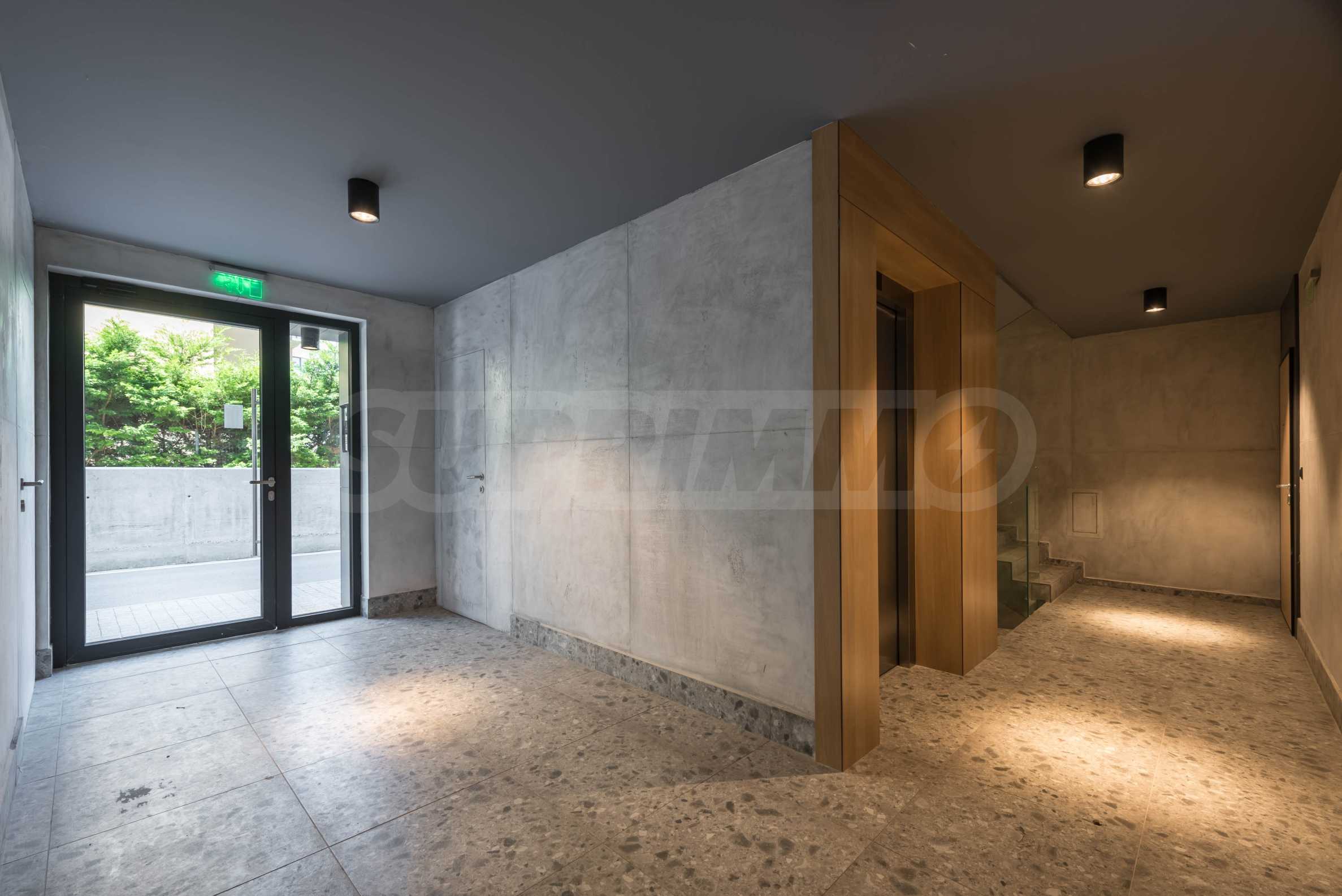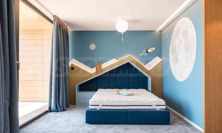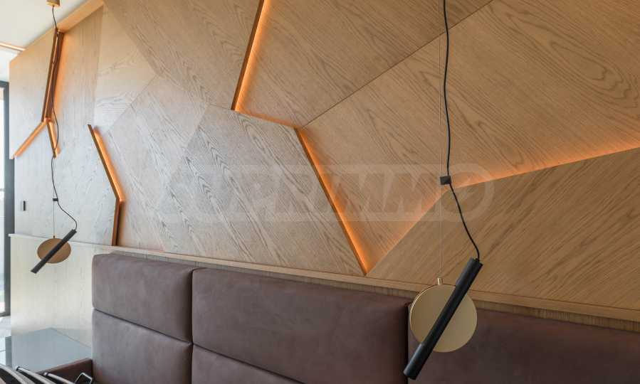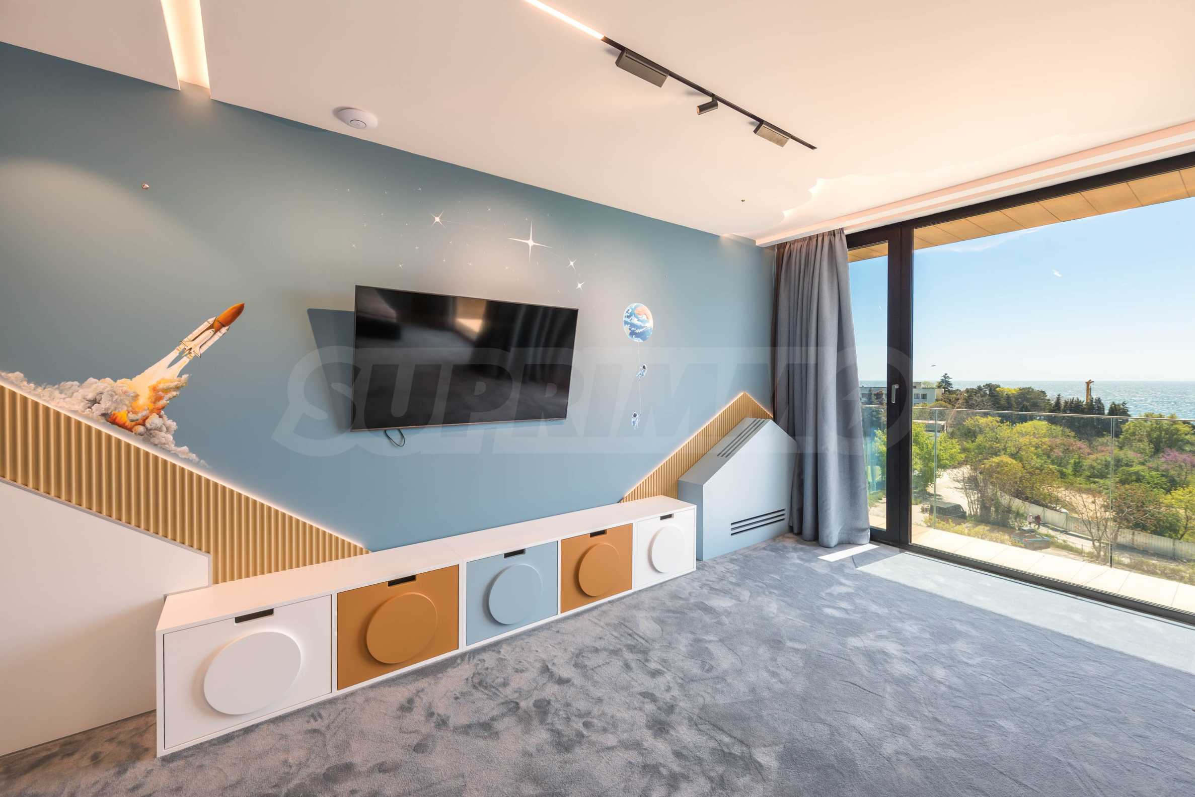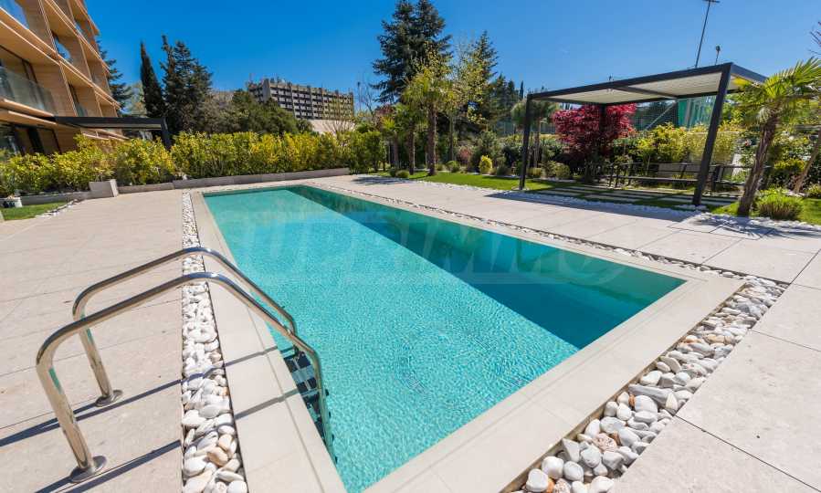 Die Wohnung ist qualitativ mit hochwertigen Materialien ausgestattet und mit modernen und funktionalen Möbeln ausgestattet. Die Einbauküche wurde nach individuellem Projekt mit hochwertigen Miele-Geräten gefertigt. Zur Ausstattung gehören Backofen, Kochfeld, Geschirrspül- und Kaffeemaschine, Einbaukühlschrank mit Gefrierfach, Weinvitrine und Spüle. Die Böden sind im Wohnzimmer mit Naturparkett und in der Küchenecke mit italienischen Granitfliesen ausgelegt, in den Schlafzimmern mit weichem Textilboden und auf den Terrassen mit Dielen aus Verbundmaterial. Die Wände sind mit Furnierpaneelen mit integrierter Beleuchtung, Spiegeln und Glas verkleidet und im Kinderzimmer mit farbenfrohen Zeichnungen gefüllt. Die Decken sind mit eingebauter Beleuchtung und Hintergrundbeschallung (Bowers & Wilkins) abgehängt. Die meisten Zimmer sind komplett möbliert, im Wohnzimmer können Sie die Polstermöbel jedoch nach Ihrem Geschmack auswählen.