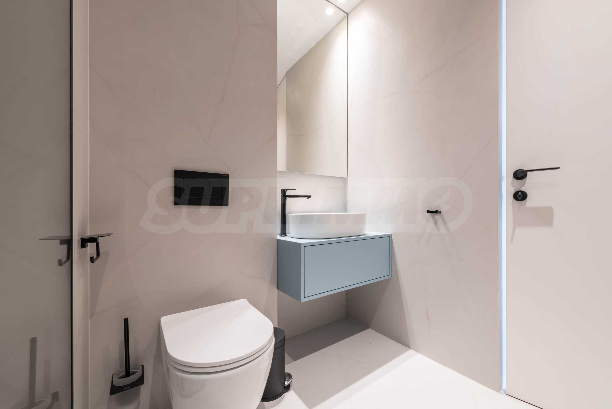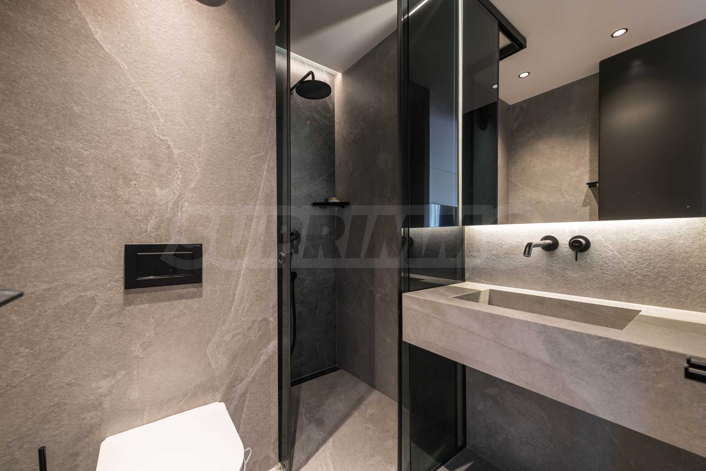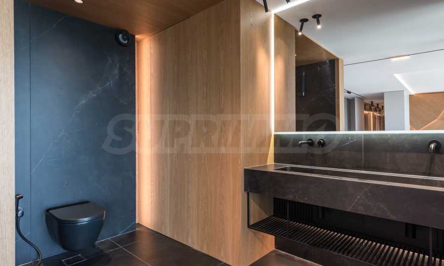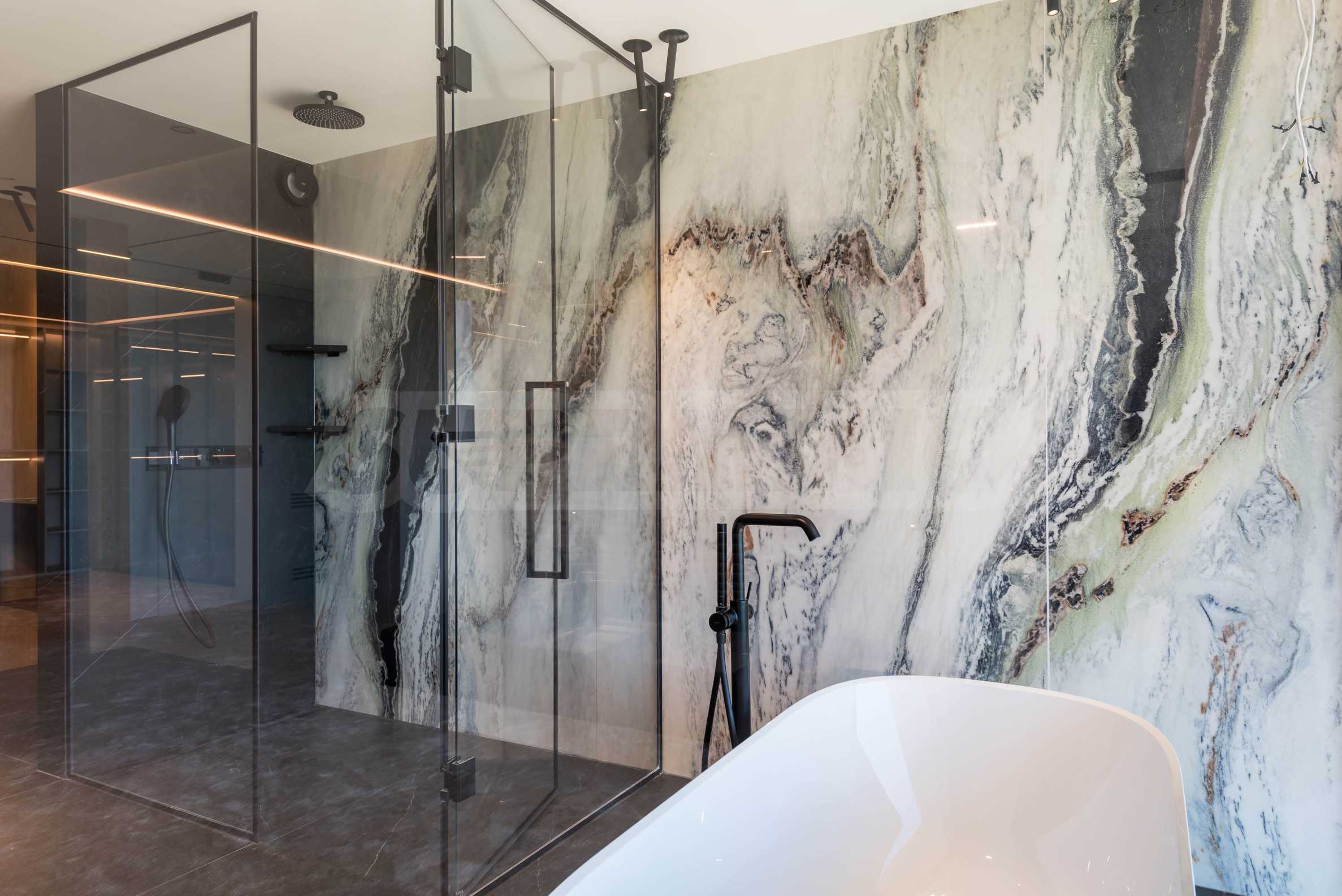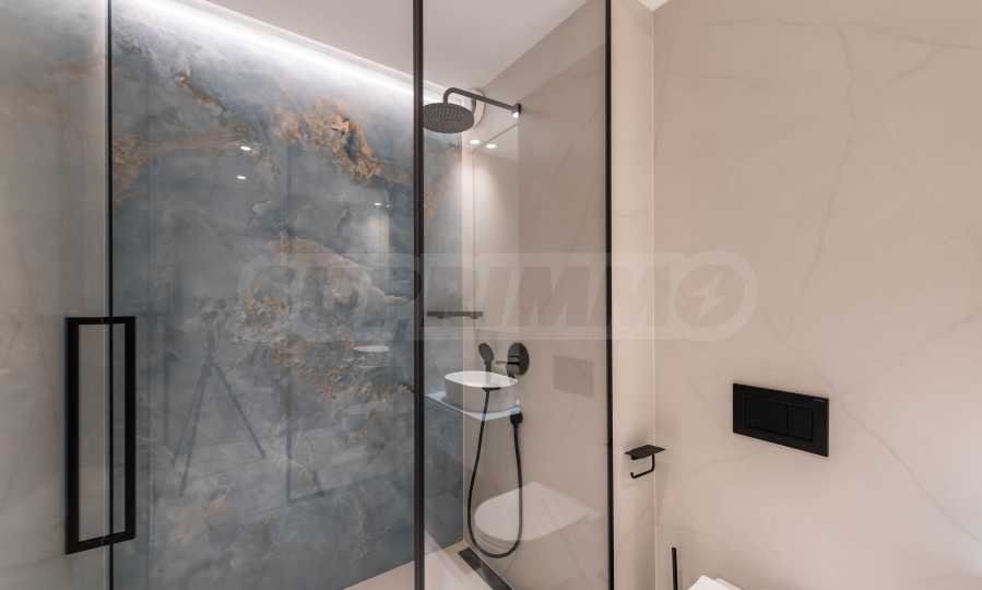 Die Badezimmer sind vollständig fertiggestellt und ausgestattet. Als Fliesen wurden italienische Granitfliesen verwendet. Die Ausstattung wird durch Armaturen von Hansgrohe, Waschbecken und eine Badewanne von Villeroy & Boch komplettiert. Die Warmwasserbereiter sind elektrisch und haben eine ausreichende Kapazität für alle Badezimmer.