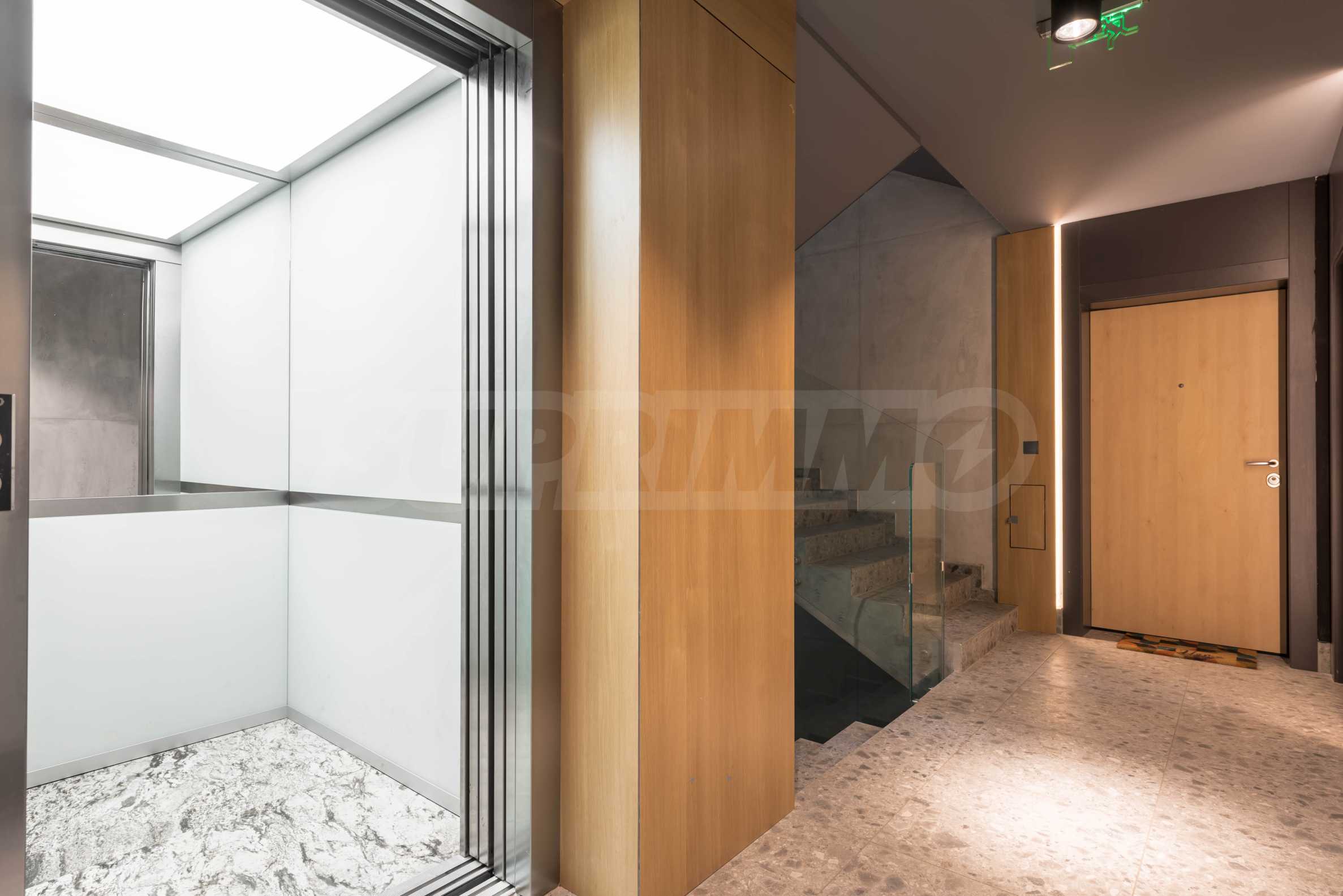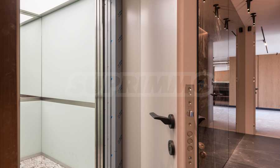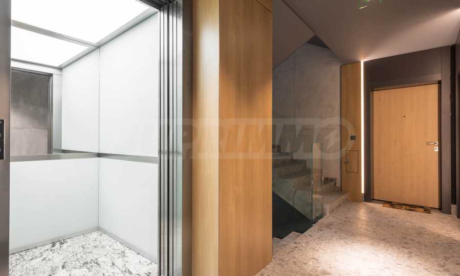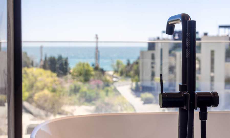 Die Geländer der Terrassen bestehen aus Triplexglas und bieten maximale Sicht auf das Meer und die neuen Wohnkomplexe in der Nachbarschaft. Der Zugang zur Wohnung erfolgt direkt vom Aufzug aus, wobei nur für die Etage ein Chip installiert ist. Der Zugang erfolgt auch vom Treppenabsatz aus über eine gepanzerte Eingangstür. Zur besseren Sicherheit wurde eine Alarmanlage installiert.