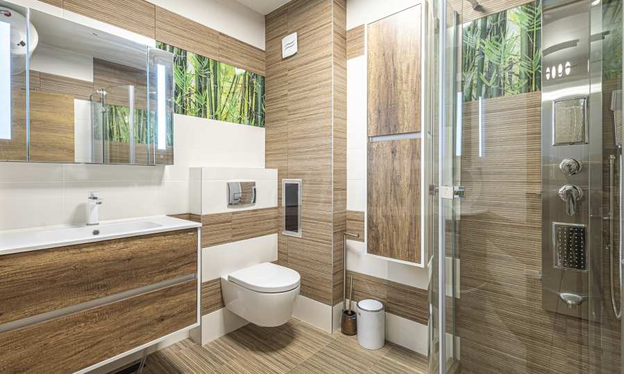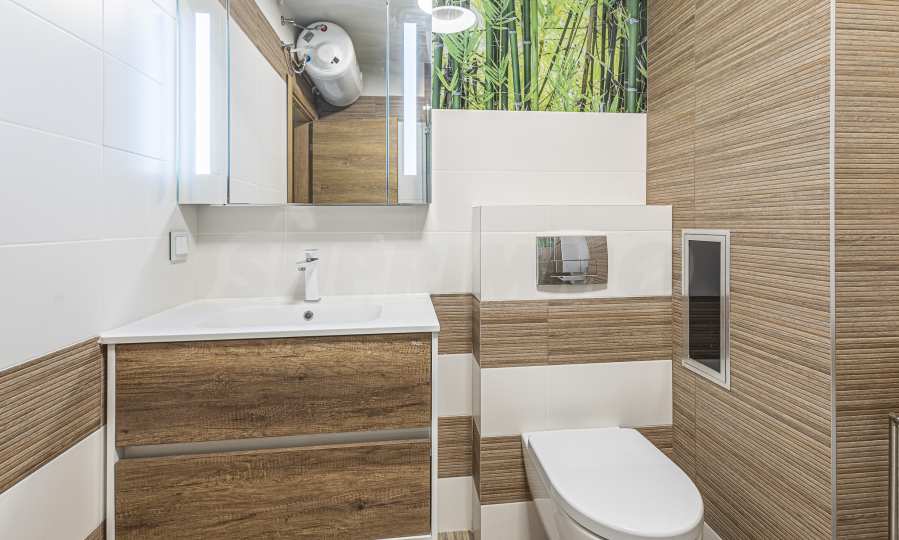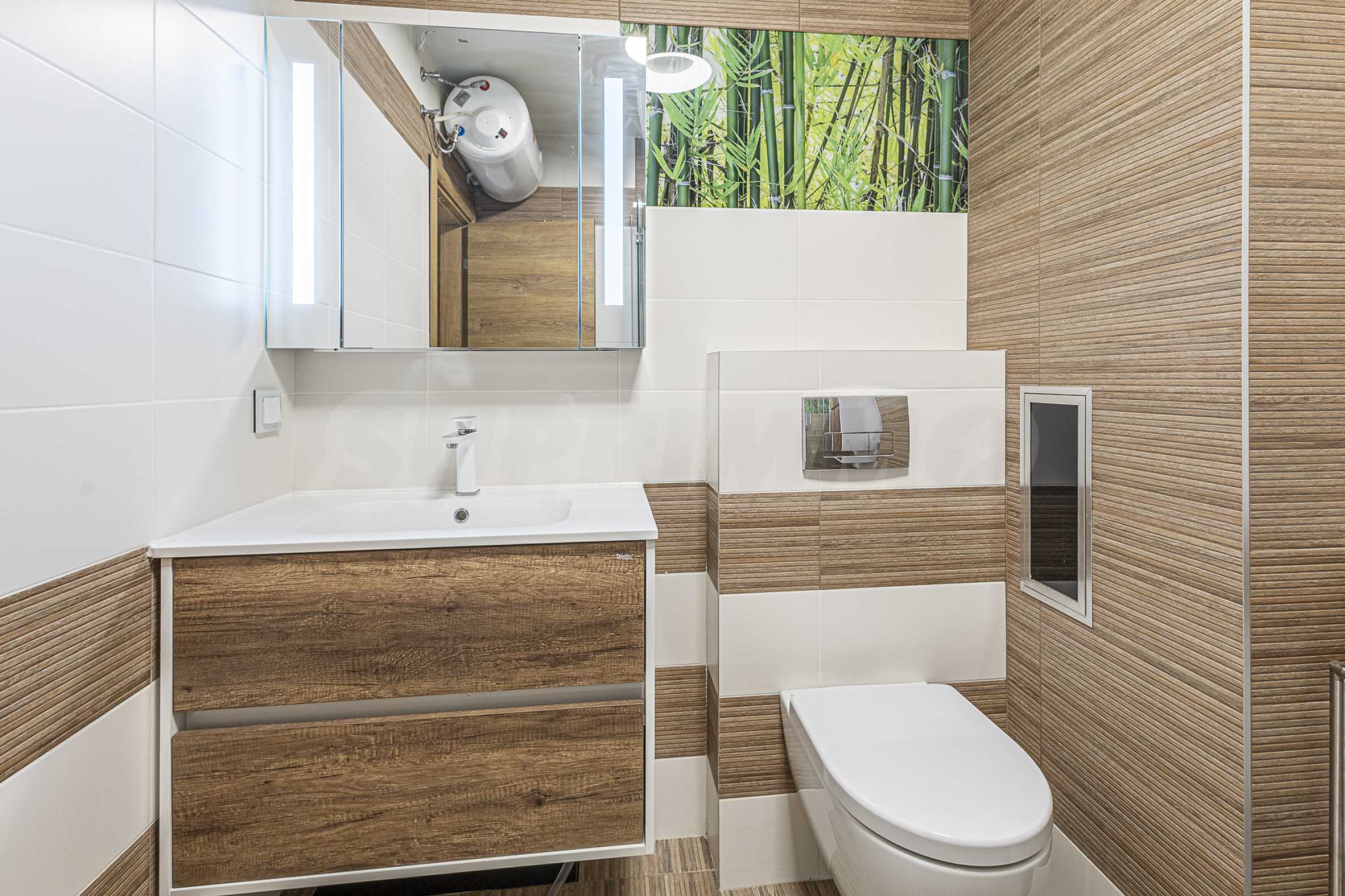 - großes, ausgestattetes Badezimmer mit Toilette, Duschkabine und Warmwasserbereiter;