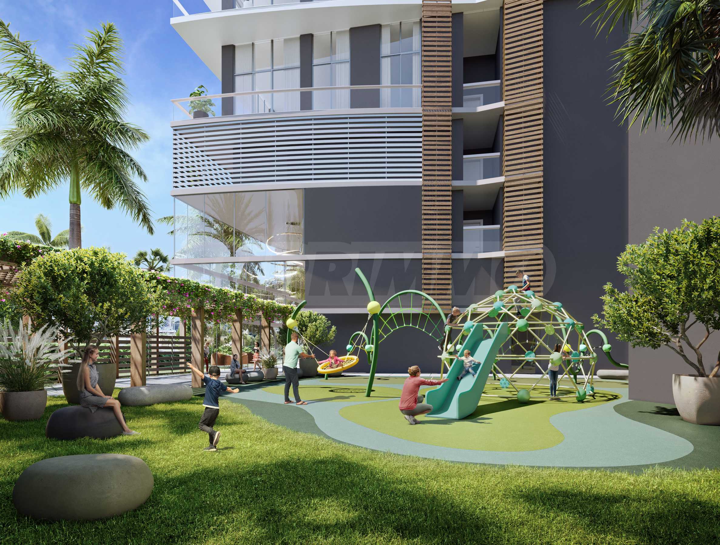 Noch bevor Sie das Gebäude betreten, finden Sie einen zweistöckigen gemeinsamen Arbeitsbereich – perfekt sowohl für konzentriertes Arbeiten allein als auch für kreative Teambesprechungen. Im Innenhof befinden sich ein Spielplatz und ein Indoor-Spielzimmer, die eine sichere und unterhaltsame Umgebung für die jüngsten Bewohner schaffen.