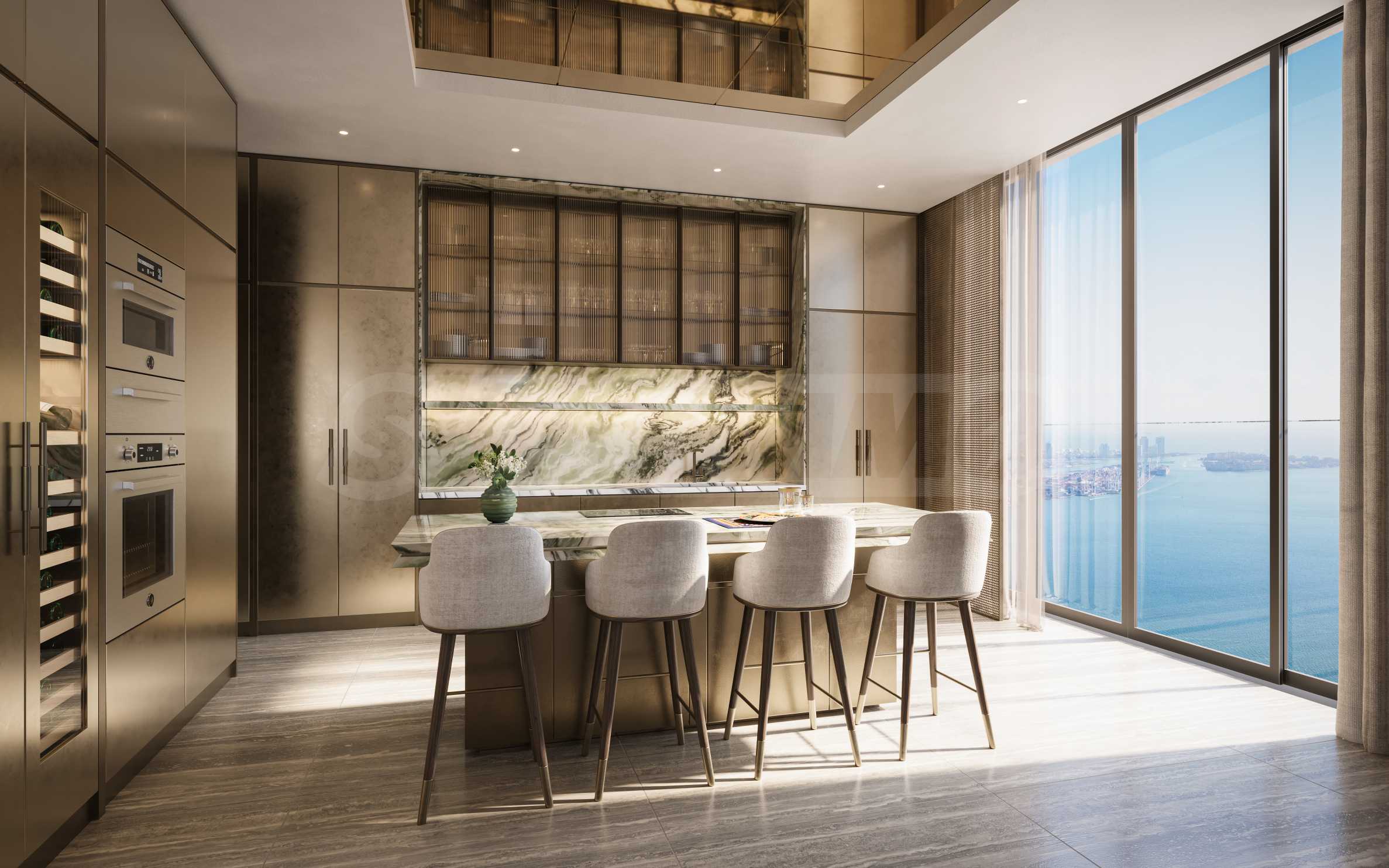 Neben hochwertigen Schränken im italienischen Stil wurden für die Küchen Elektrogeräte der führenden Marken Sub Zero und Wolf ausgewählt. Auch das Design der Badezimmer wurde von Dolce & Gabbana individuell angepasst und so gestaltet, dass es sich perfekt in die Konzepte der Residenzen einfügt. Jedes Schlafzimmer in den Wohnungen verfügt über ein eigenes Badezimmer und das Hauptschlafzimmer hat zusätzlich einen integrierten Kleiderschrank, der ebenfalls auf die Bedürfnisse der zukünftigen Bewohner zugeschnitten ist. Zu den Apartments gehört eine Waschküche mit Waschmaschine und Trockner der führenden Marke Miele.