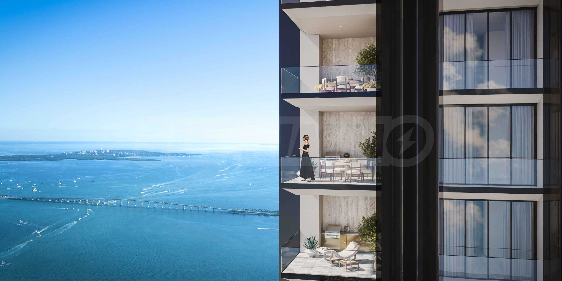 Die Apartments bieten einen Panoramablick auf die Biscayne Bay, den Atlantik und Downtown Miami , wo die Wolkenkratzer besonders bei Sonnenuntergang eine zauberhafte Landschaft schaffen.