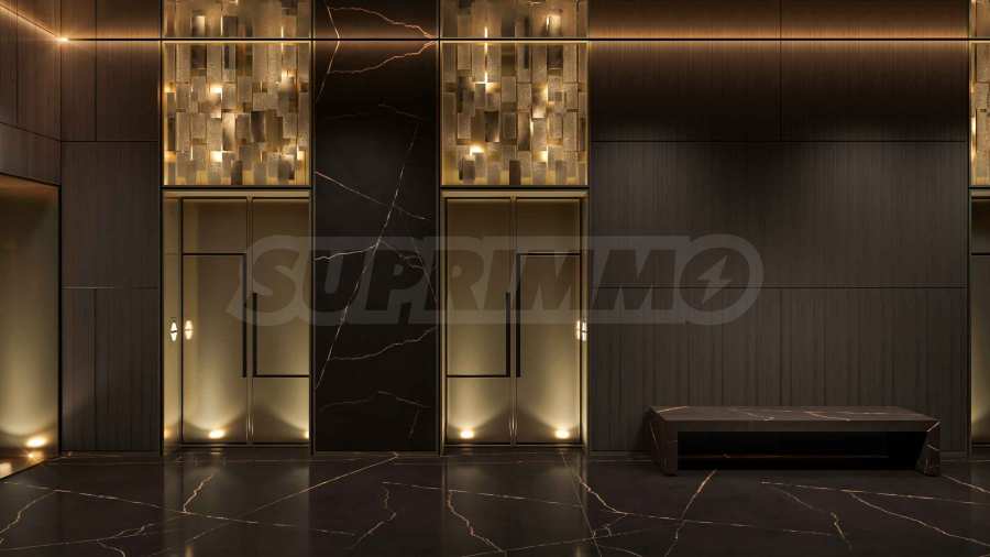 Das in Zusammenarbeit mit GV Development entworfene Gebäude wird ein wahres Symbol für Reichtum und Kreativität sein. Der Eingangsbereich beeindruckt durch eine Kombination edler Materialien – Marmor, Metall und Glas, umhüllt von kunstvoller Beleuchtung. Brunnen vor dem Gebäude sorgen für einen Hauch von Frische und unterstreichen das Gefühl von Prestige vom ersten Schritt an.