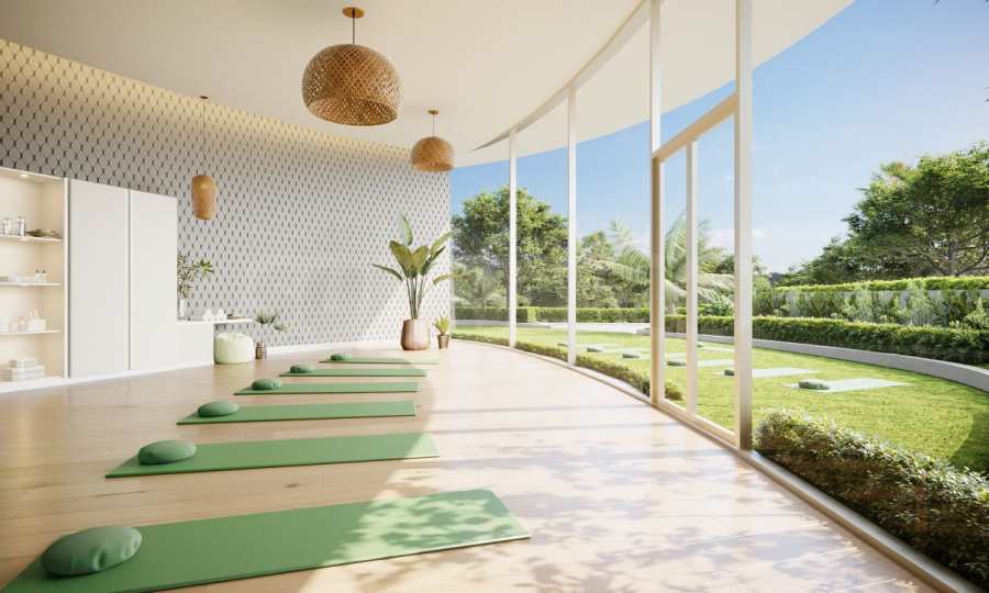 - Ausgestatteter Fitnessraum und Yogaraum mit Schiebefenstern, die Ihnen das Training an der frischen Luft ermöglichen;