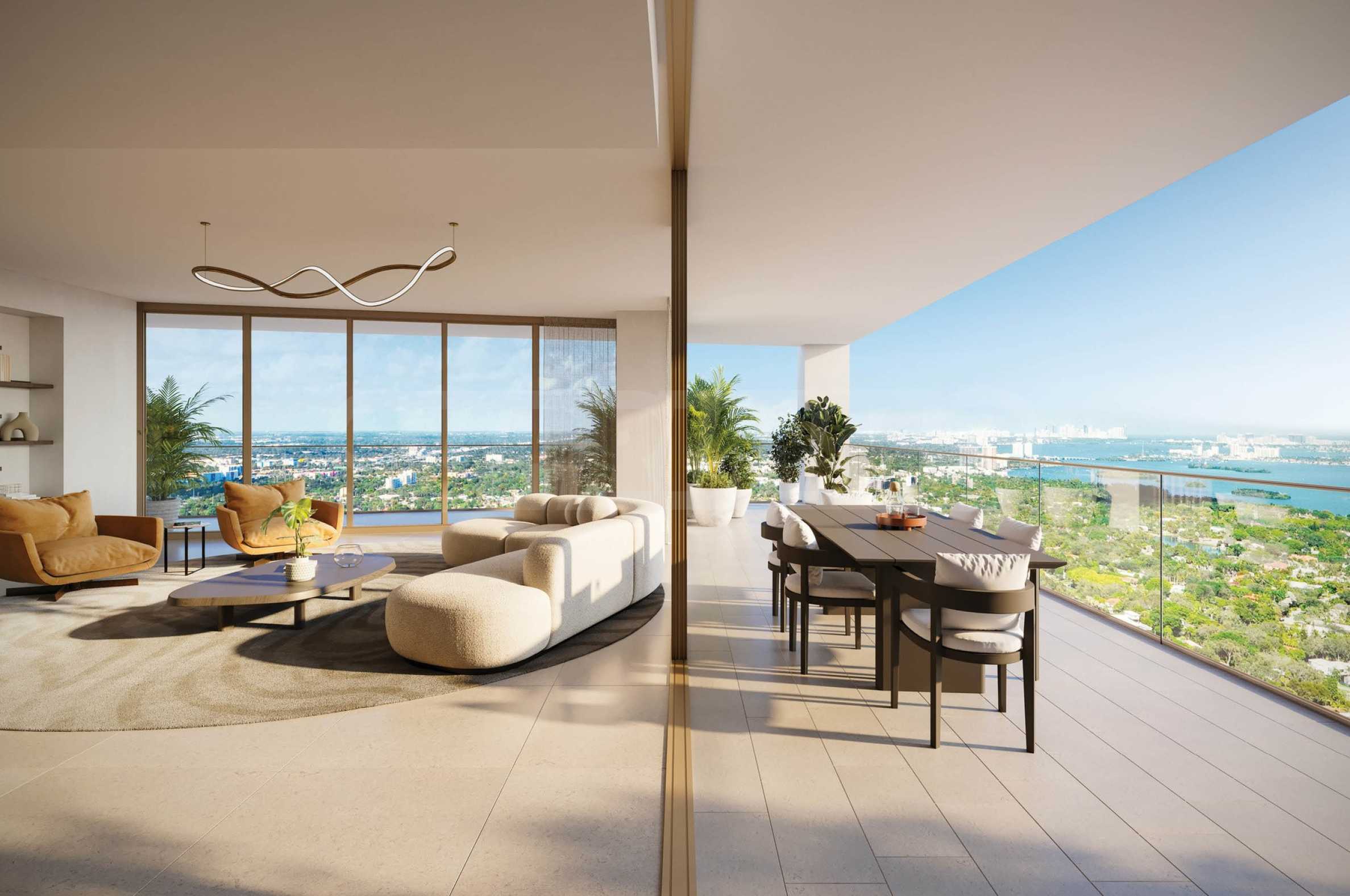 Wir präsentieren Ihnen ein geräumiges Apartment mit einem Schlafzimmer, das bereit ist, ein echtes Zuhause zu werden, in dem Sie Erinnerungen schaffen und unvergessliche Momente erleben können. Die Wohnung hat eine Gesamtfläche von 99,50 qm. und ist über einen privaten Aufzug erreichbar, der Ihre Ruhe und Privatsphäre garantiert. 20,50 m² Außenfläche sind geplant und die großzügigen Terrassen bieten einen atemberaubenden 180-Grad-Blick auf die Biscayne Bay, den Miami Design District und Downtown – ein Erlebnis, das jeden Morgen und Abend zu einem wahren Spektakel macht.